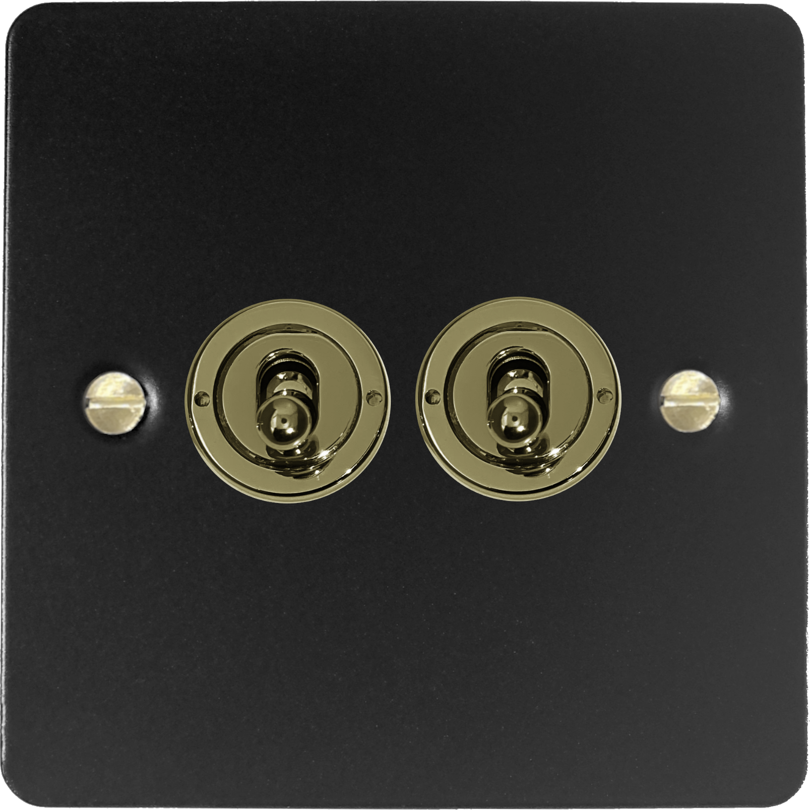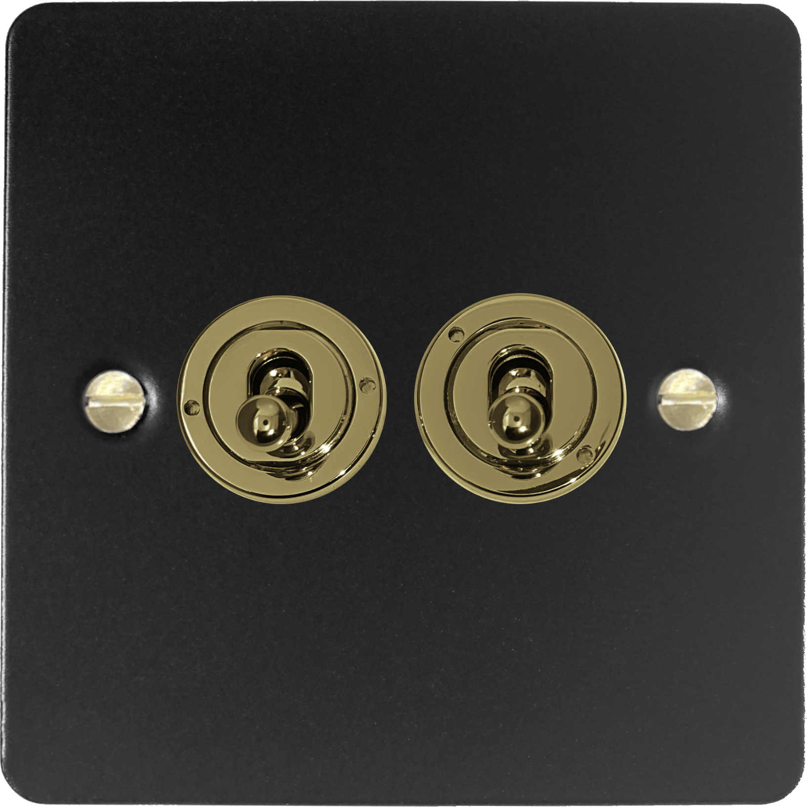 Flat Black Toggle Switch (2 Gang/Polished Brass Toggle) - G+H FFB382-PB