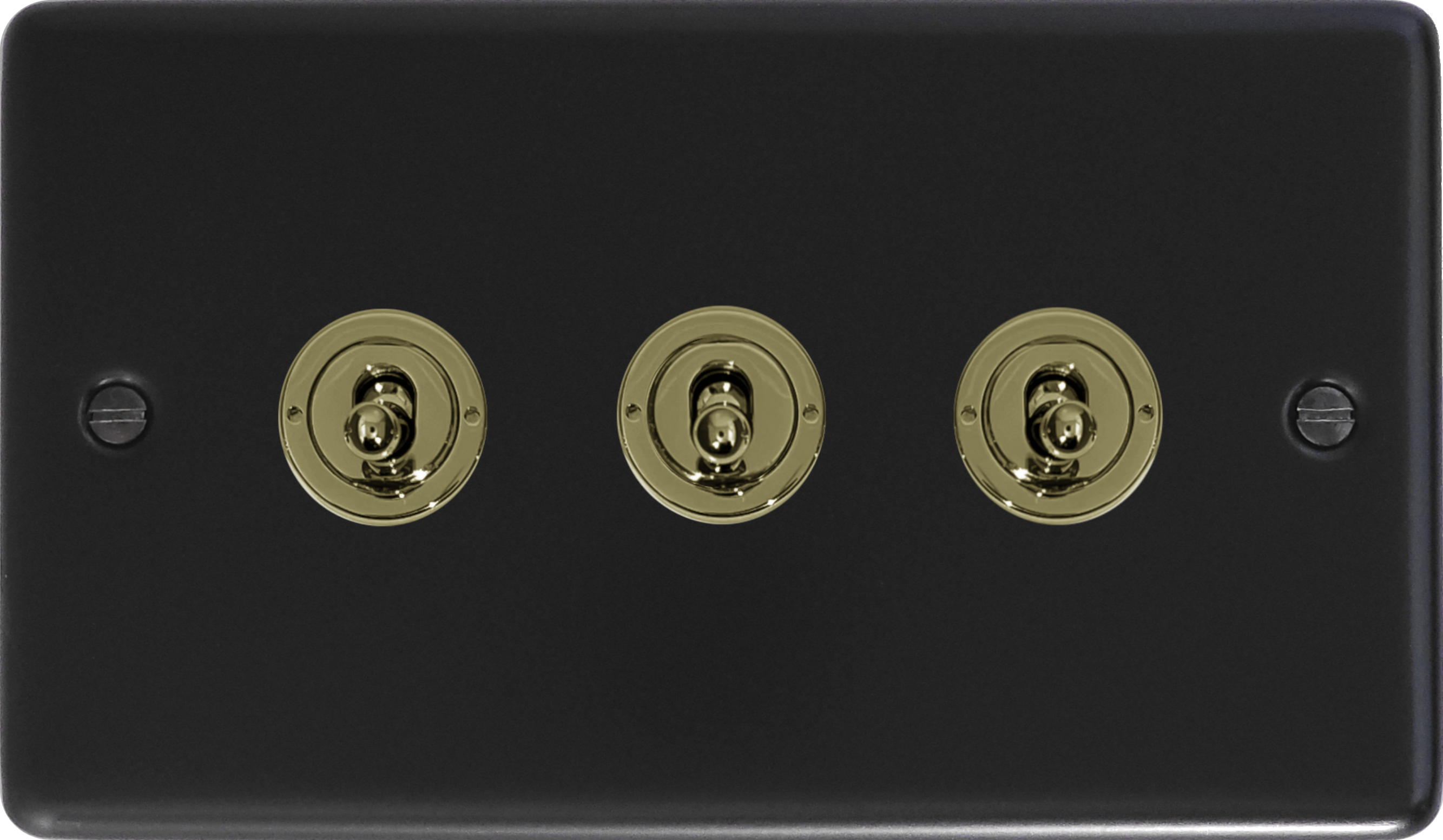 Flat Black Toggle Switch (3 Gang/Brass Toggle) - G+H CFB383-PB
