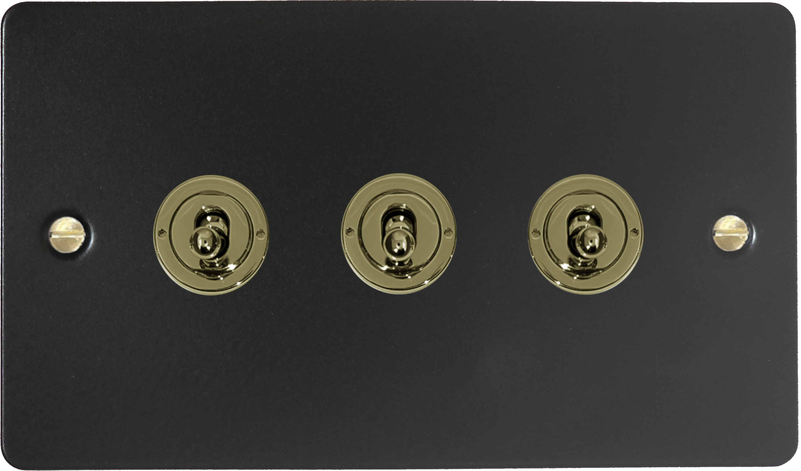 Flat Black Toggle Switch (3 Gang/Polished Brass Toggle) - G+H FFB383-PB