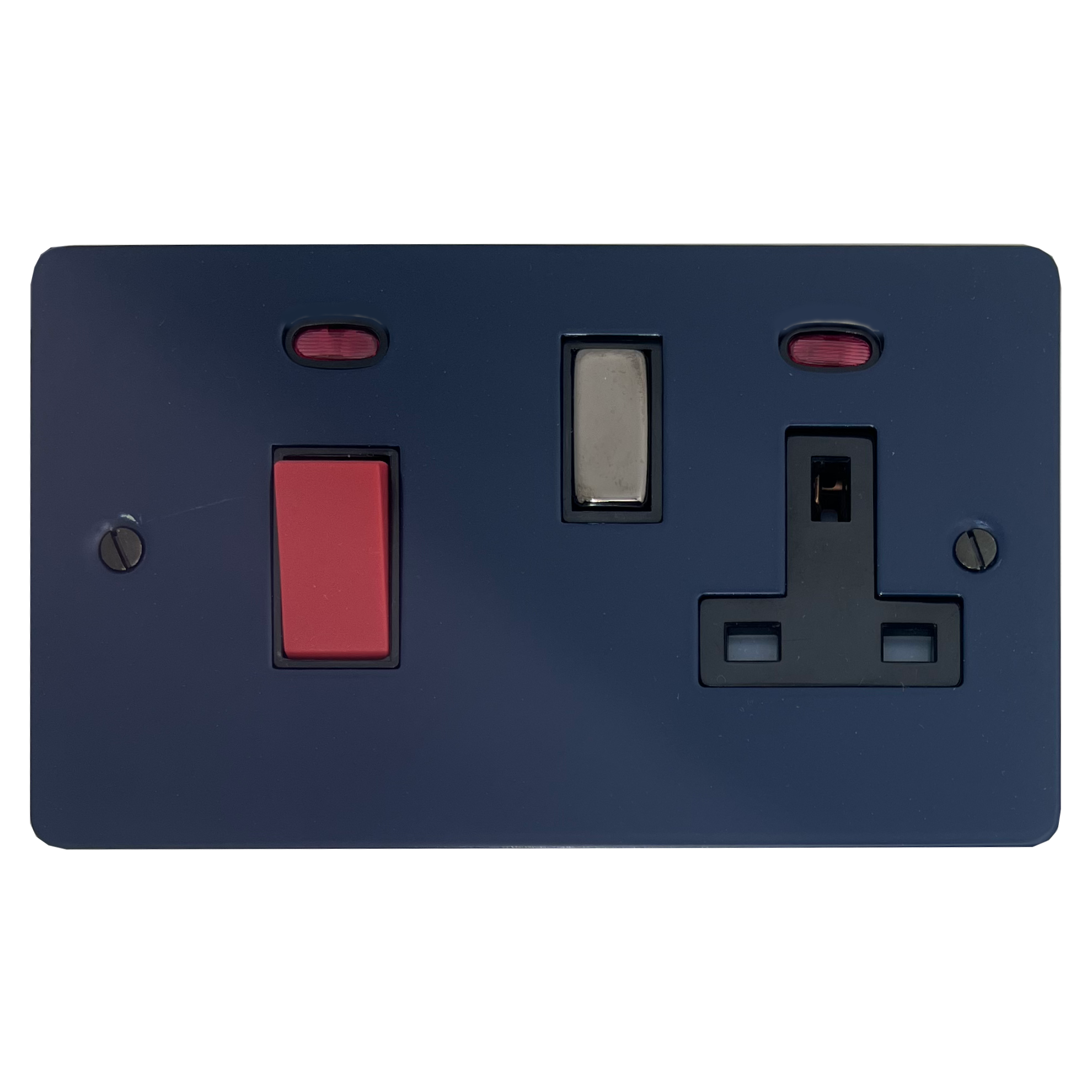 Flat Blue Cooker Switch with Socket (Black Insert/Black Nickel Switch) - G+H FRB329-BN