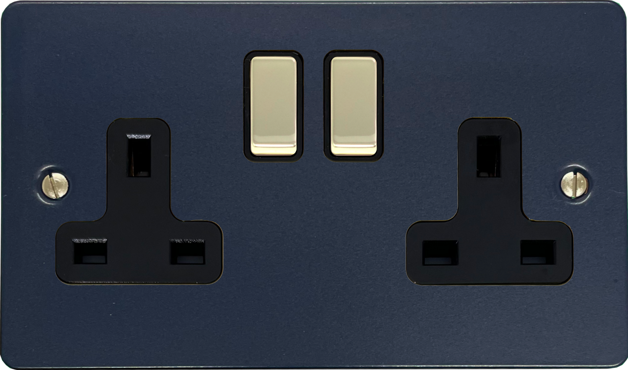 Flat Blue Double Socket (Black Insert/Polished Brass Switches) - G+H _FRB410