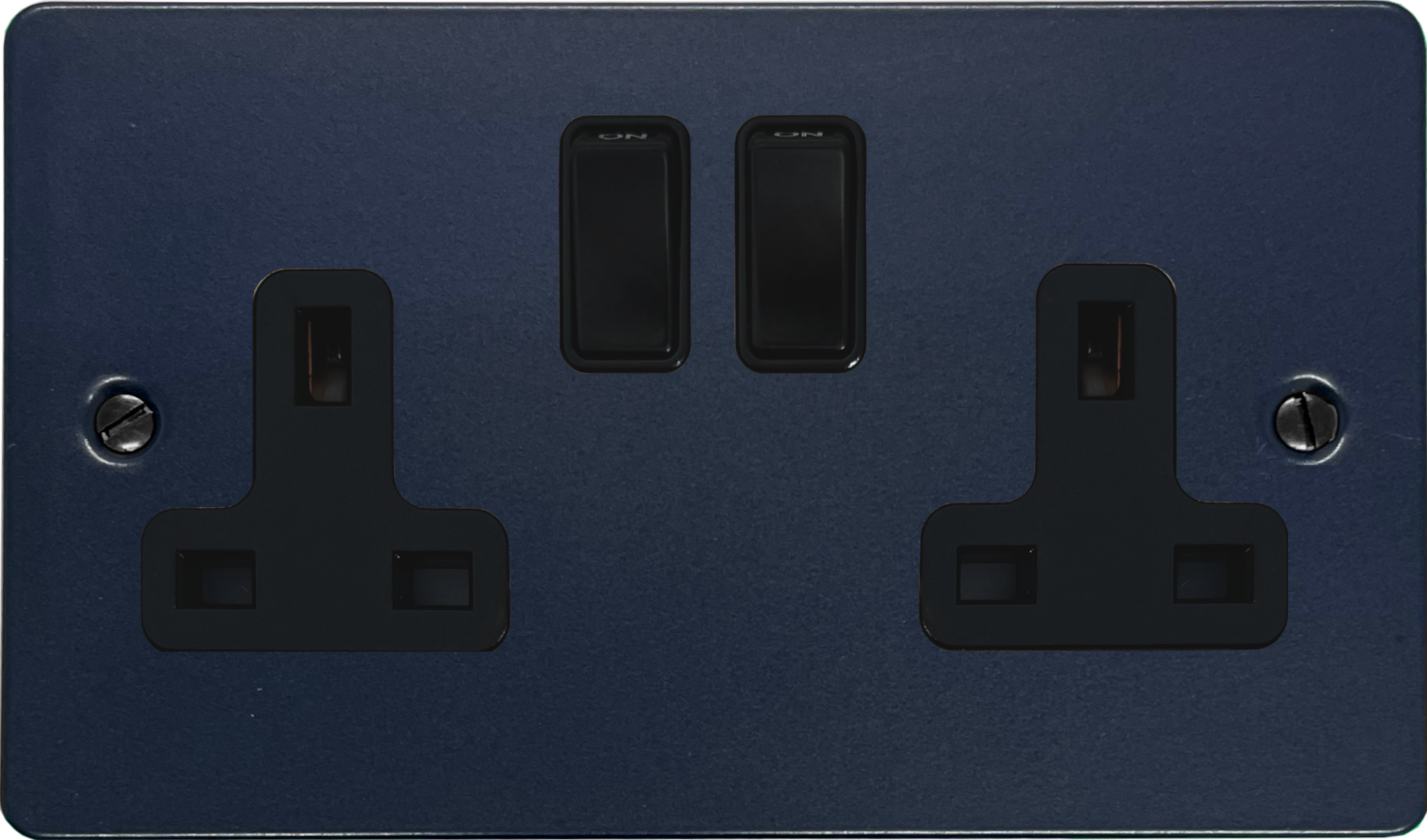 Flat Blue Double Socket (Black Switches) - G+H _FRB410