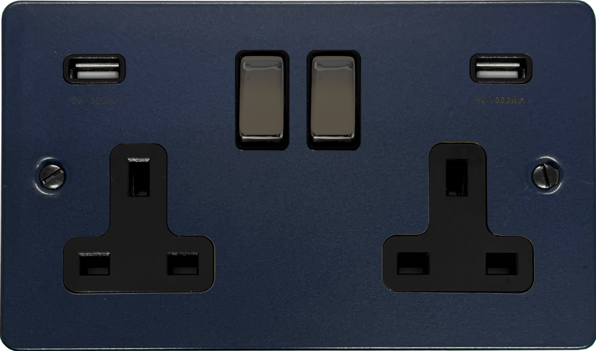 Flat Blue Double Socket with USB (Black Insert/Black Nickel Switches) - G+H FRB3910-BN