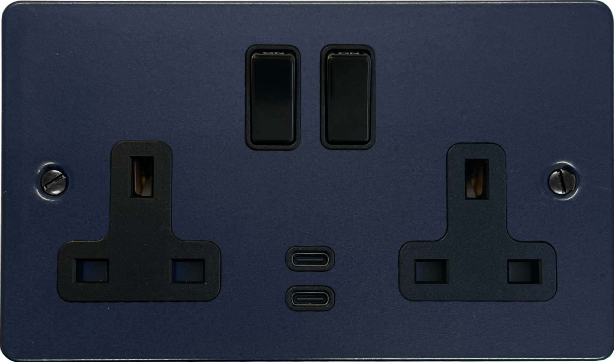 Flat Blue Double Socket with USB-C (Black Switches) - G+H FRB913B