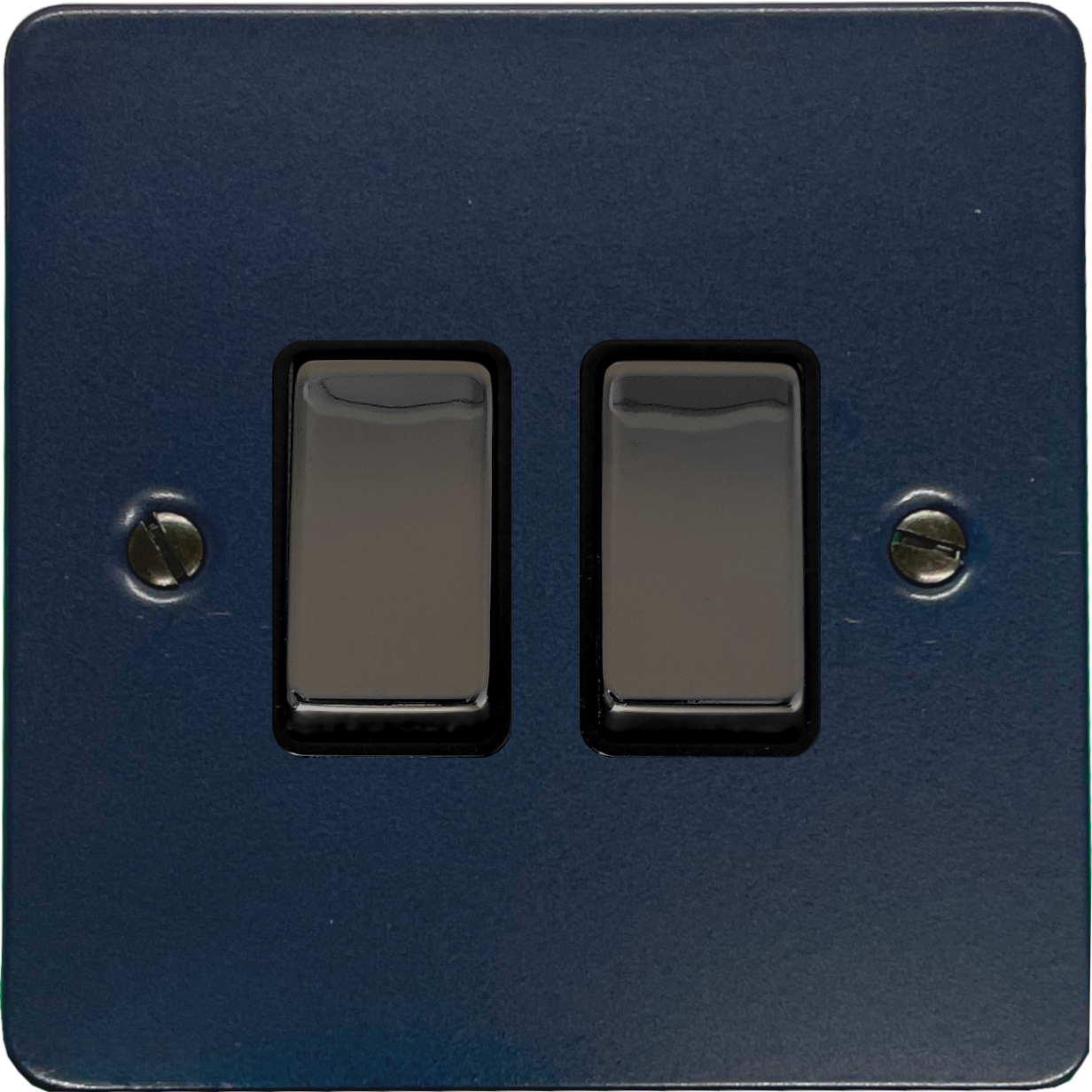 Flat Blue Light Switch (2 Gang/Black Insert/Black Nickel Switches) - G+H FRB302-BN