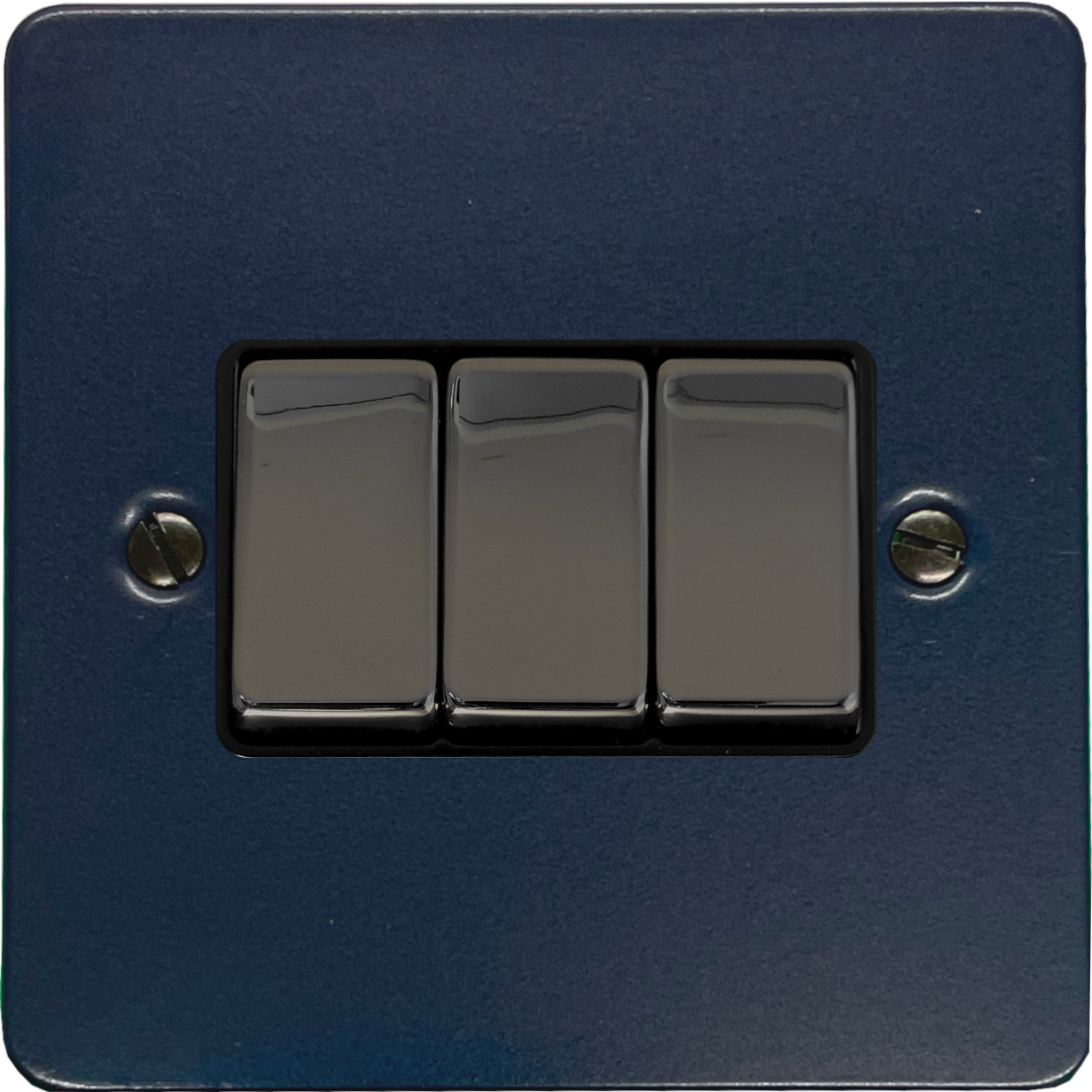 Flat Blue Light Switch (3 Gang/Black Insert/Black Nickel Switches) - G+H FRB303-BN