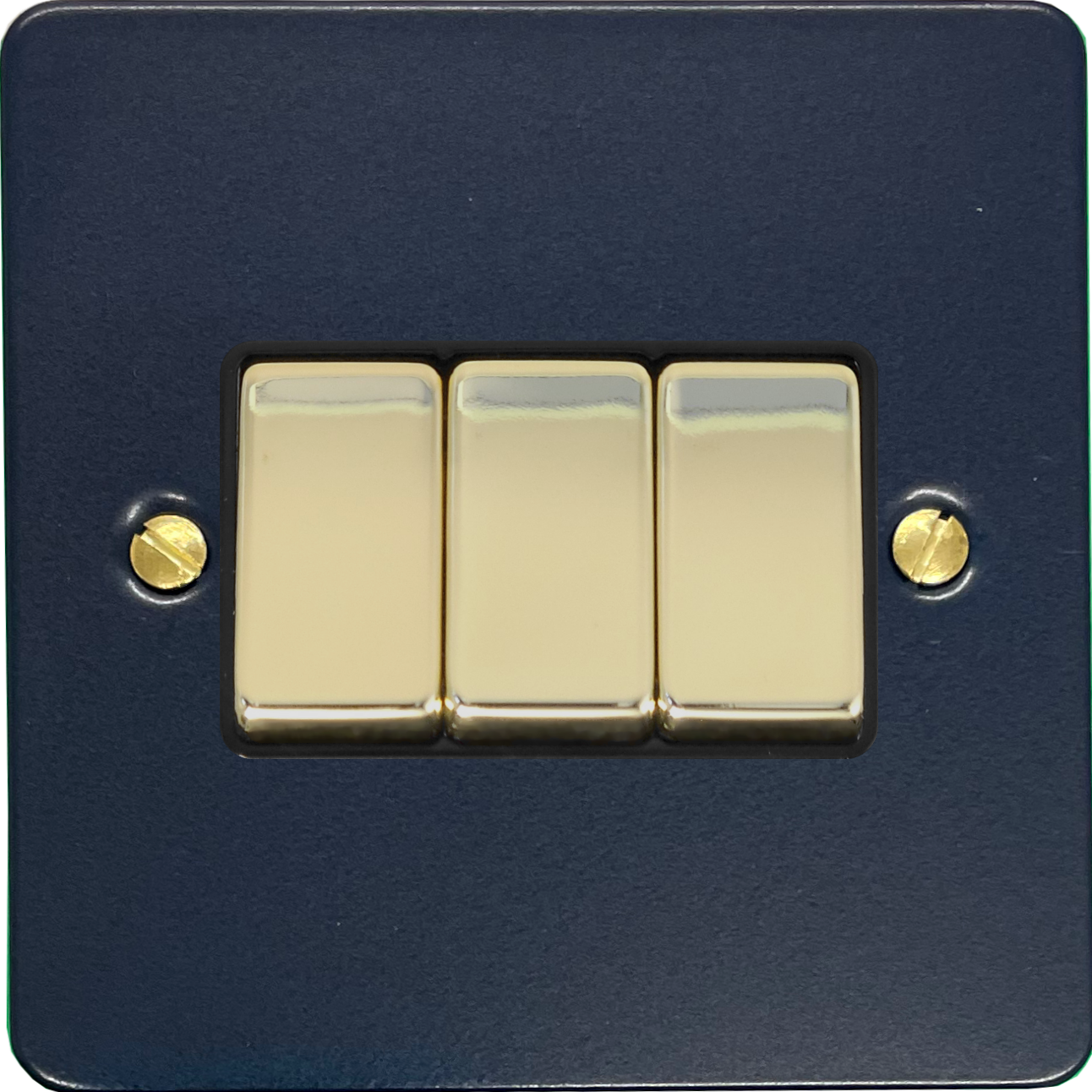 Flat Blue Light Switch (3 Gang/Black Insert/Polished Brass Switches) - G+H FRB303-PB