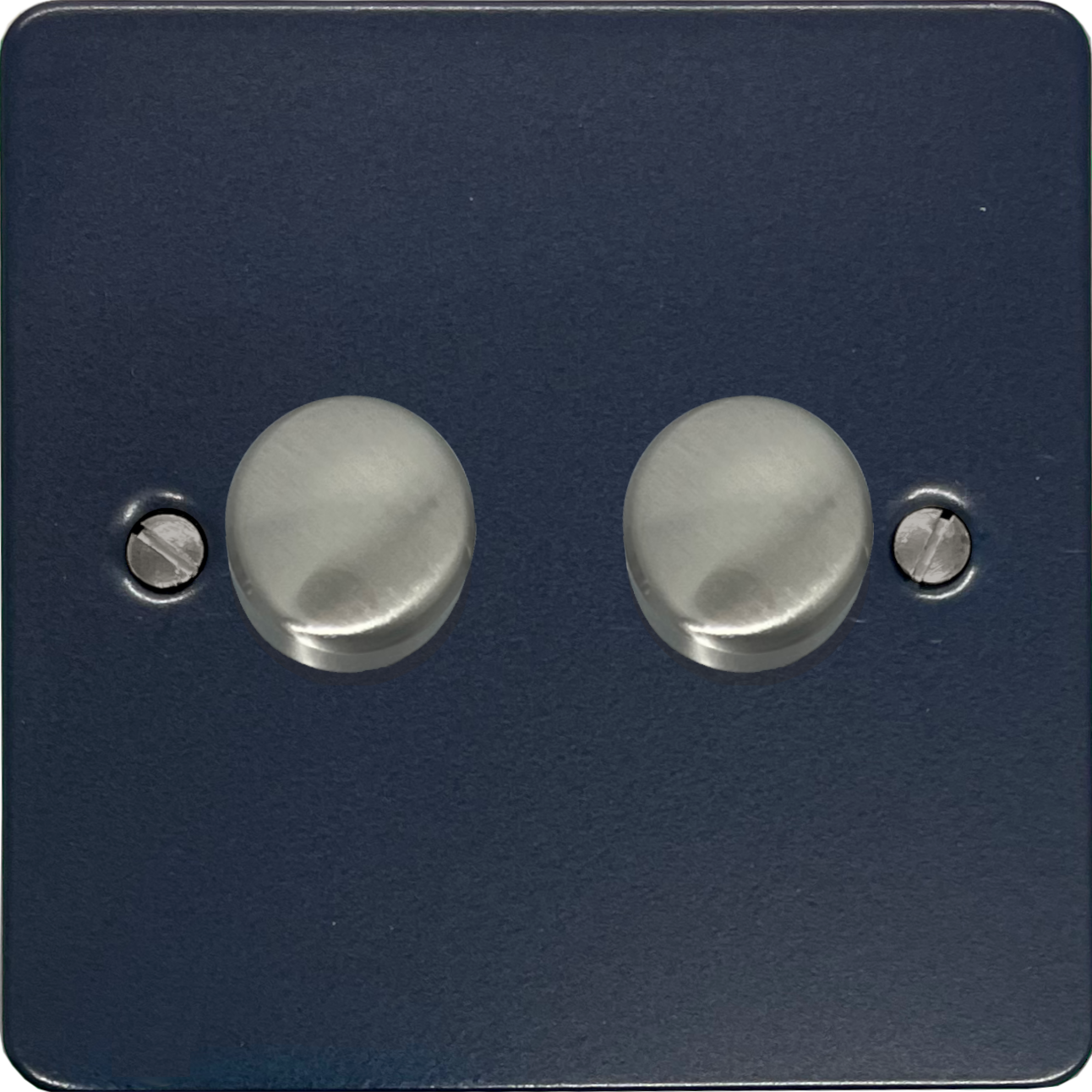 Flat Blue Push LED Dimmer (2 Gang/Brushed Steel Caps)