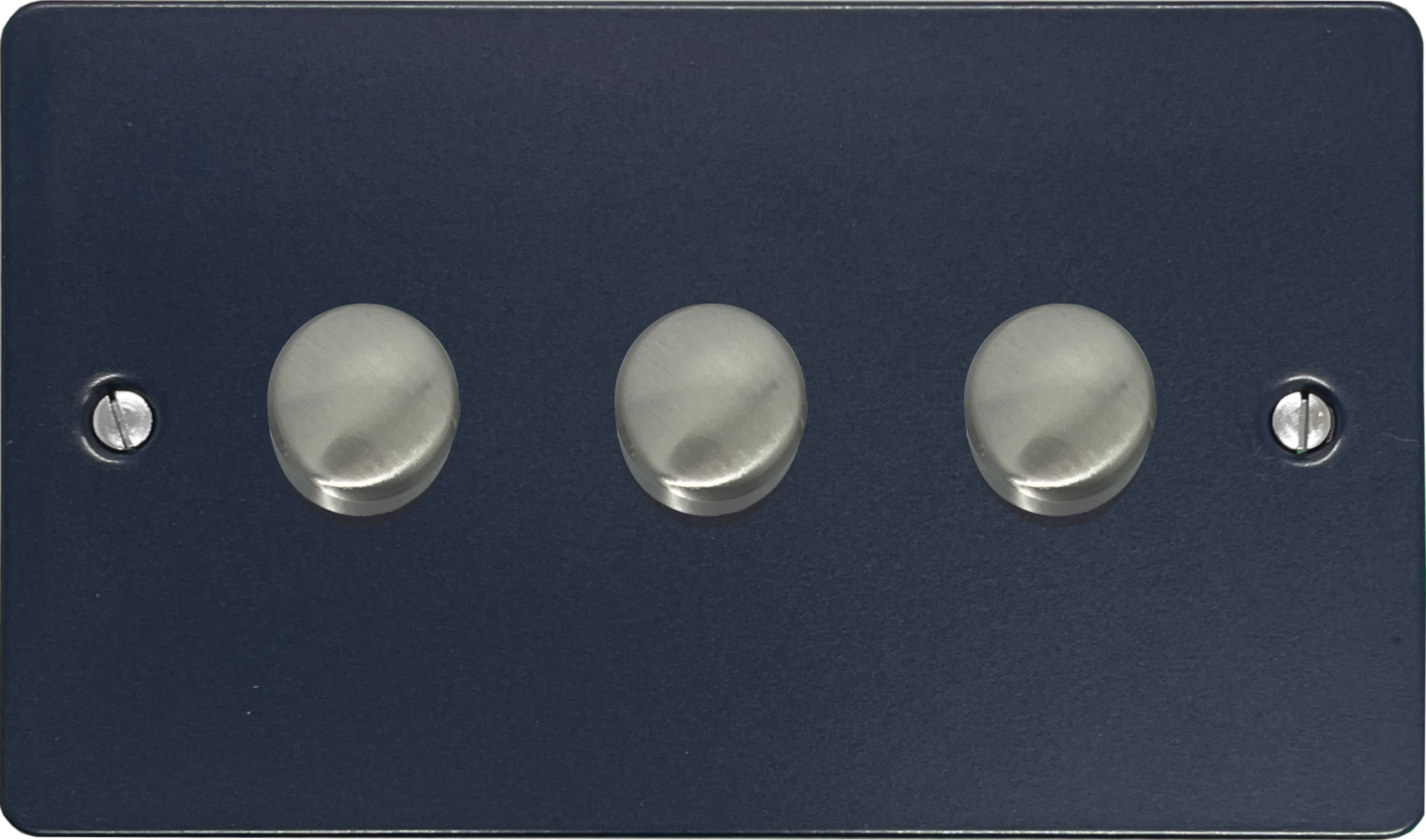 Flat Blue Push LED Dimmer (3 Gang/Brushed Steel Caps)