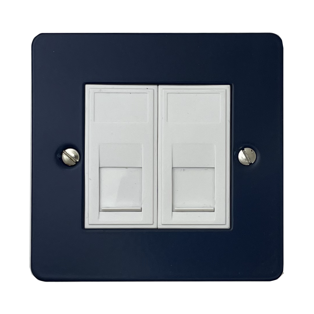 Flat Blue RJ45 Socket (2 Gang/White Insert) - G+H FRB62W