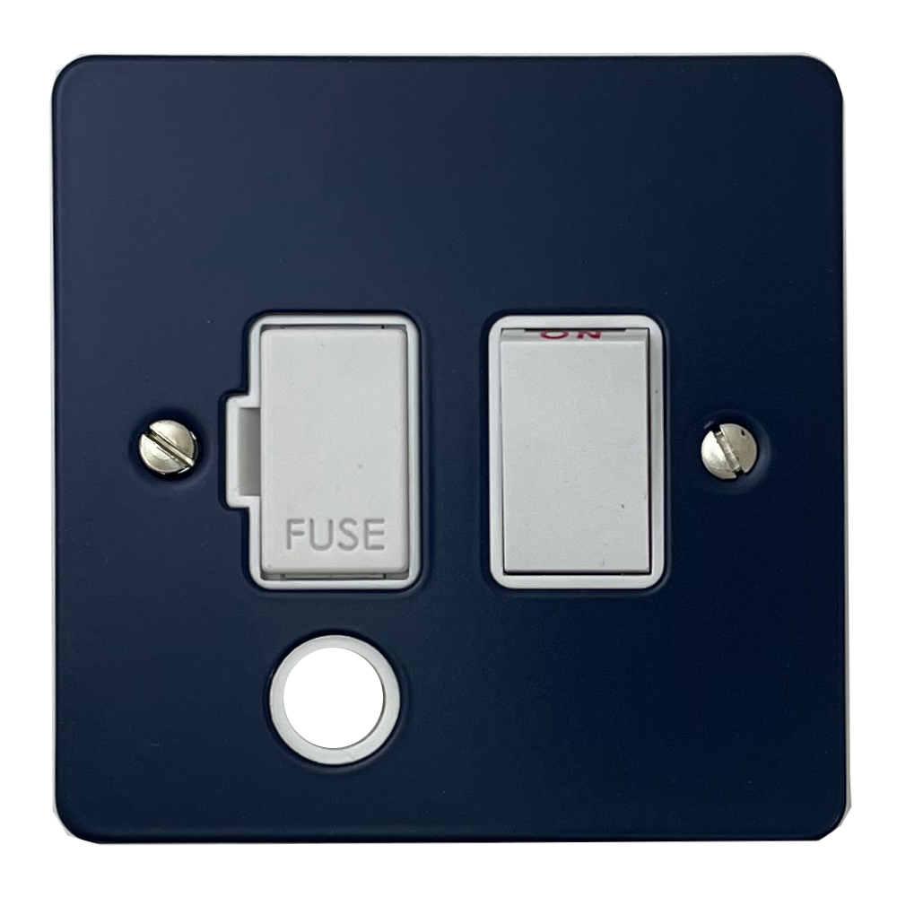 Flat Blue Switched Fused Spur with Flex Outlet (White Switch) - G+H FRB56W