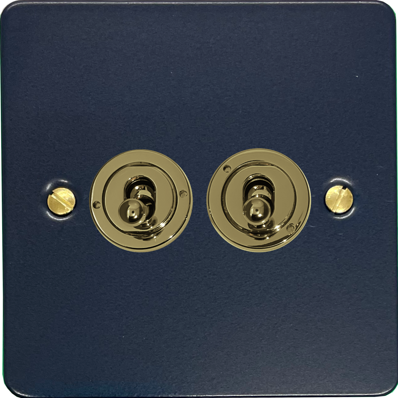 Flat Blue Toggle Switch (2 Gang/Polished Brass Switches) - G+H FRB382-PB