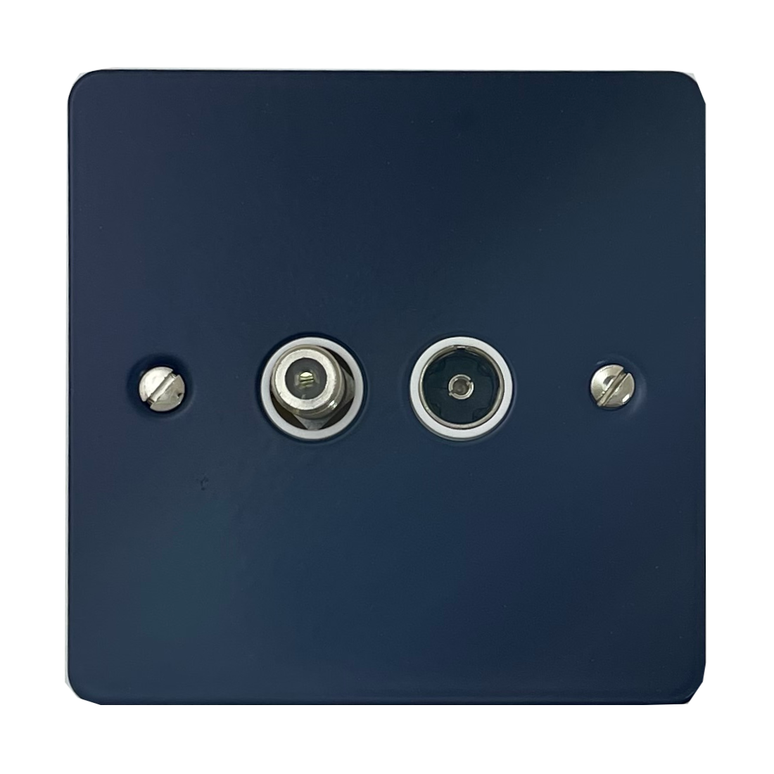 Flat Blue TV/Satellite Socket (White Insert) - G+H FRB38W