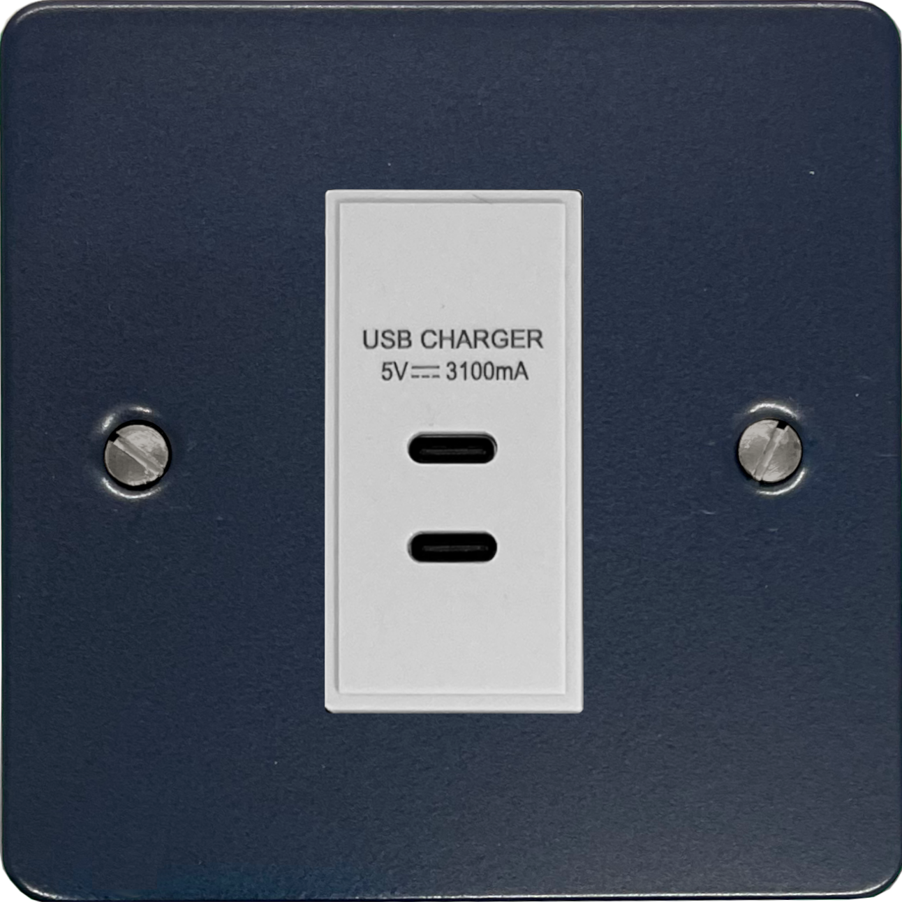 Flat Blue USB Charger (2x USB-C) (1 Gang/White Insert) - G+H FRB42W