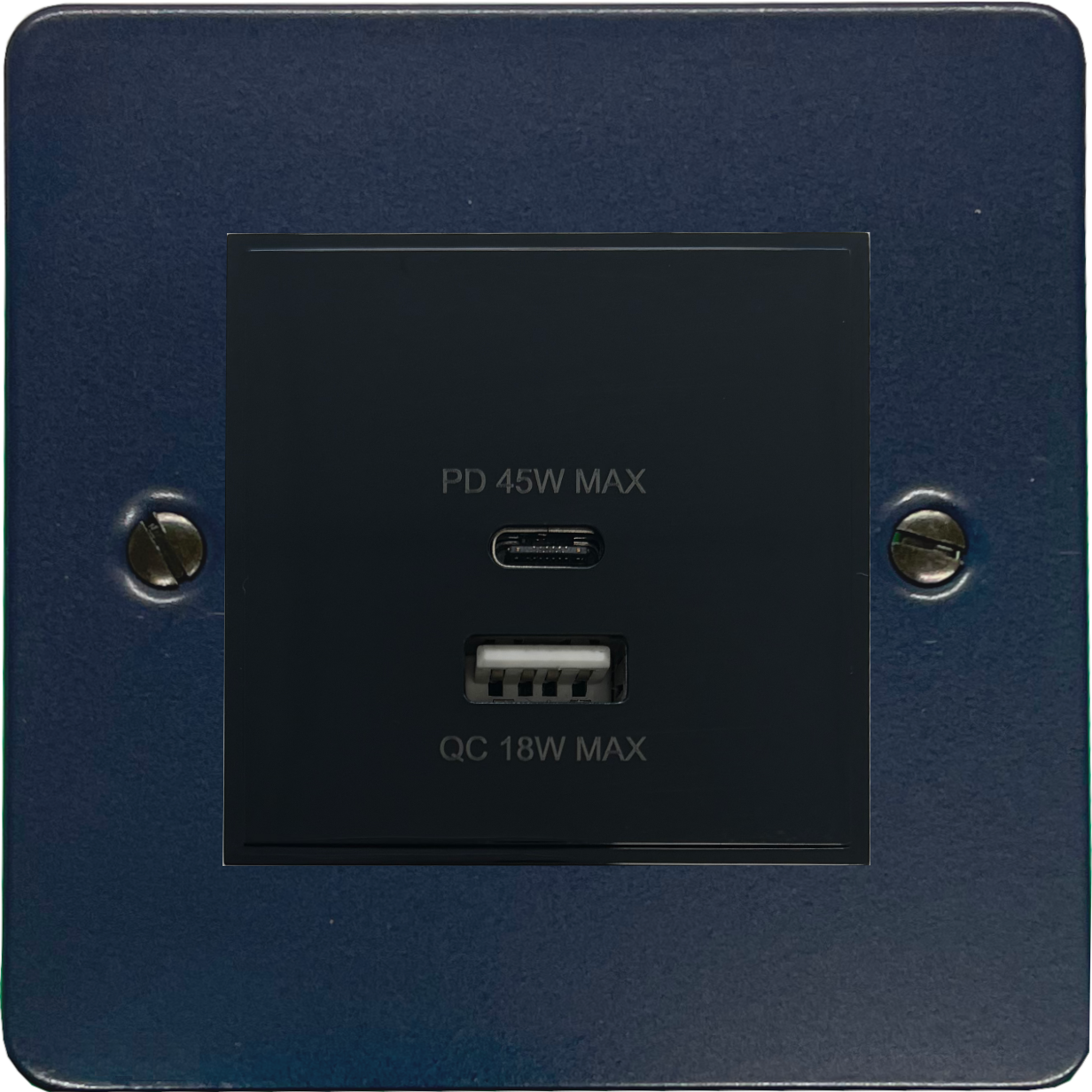 Flat Blue USB Charger (Dual USB A + C Quick Charge) (1 Gang/Black Insert) - G+H FRB43B