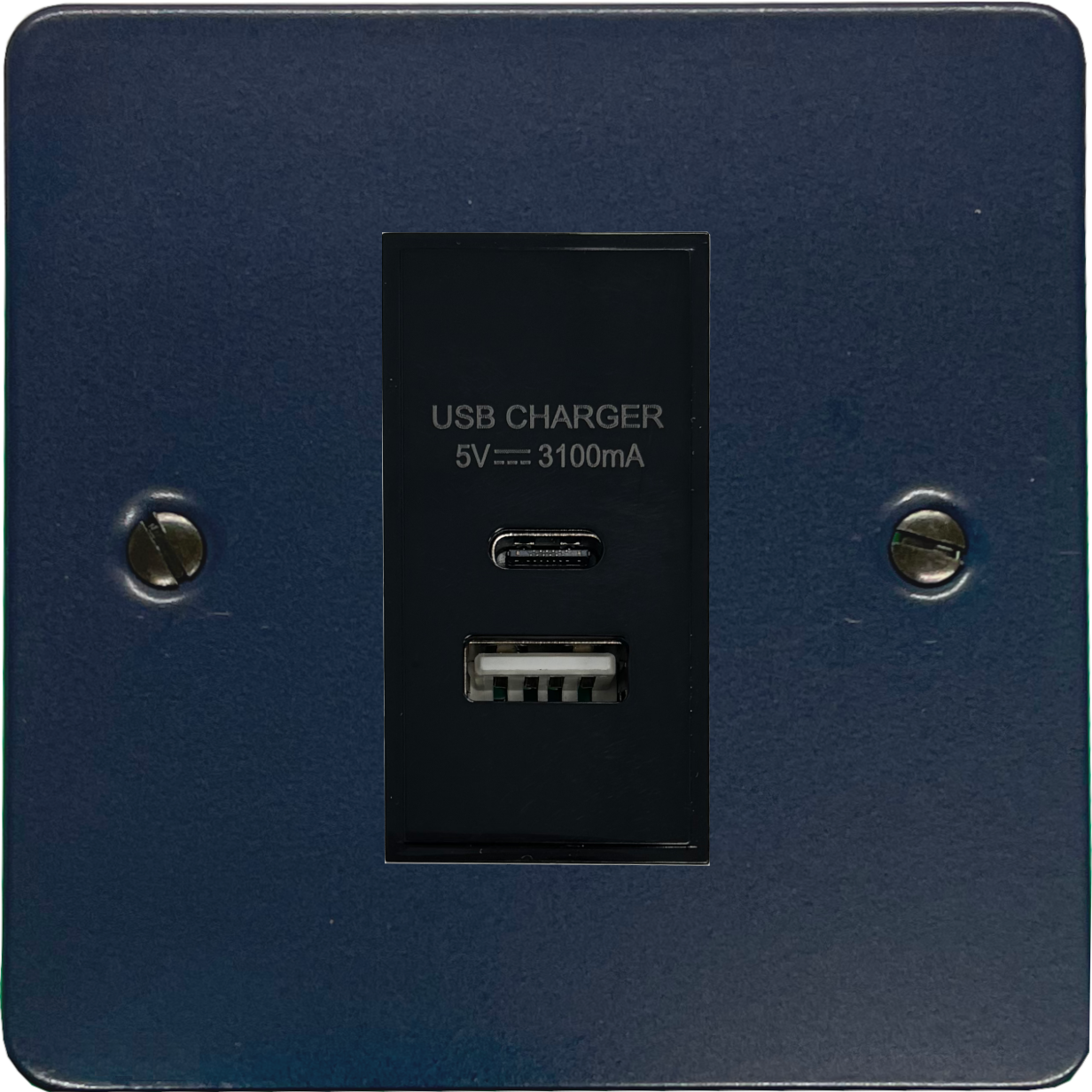 Flat Blue USB Charger (USB-A and USB-C) (1 Gang/Black Insert) - G+H FRB41B