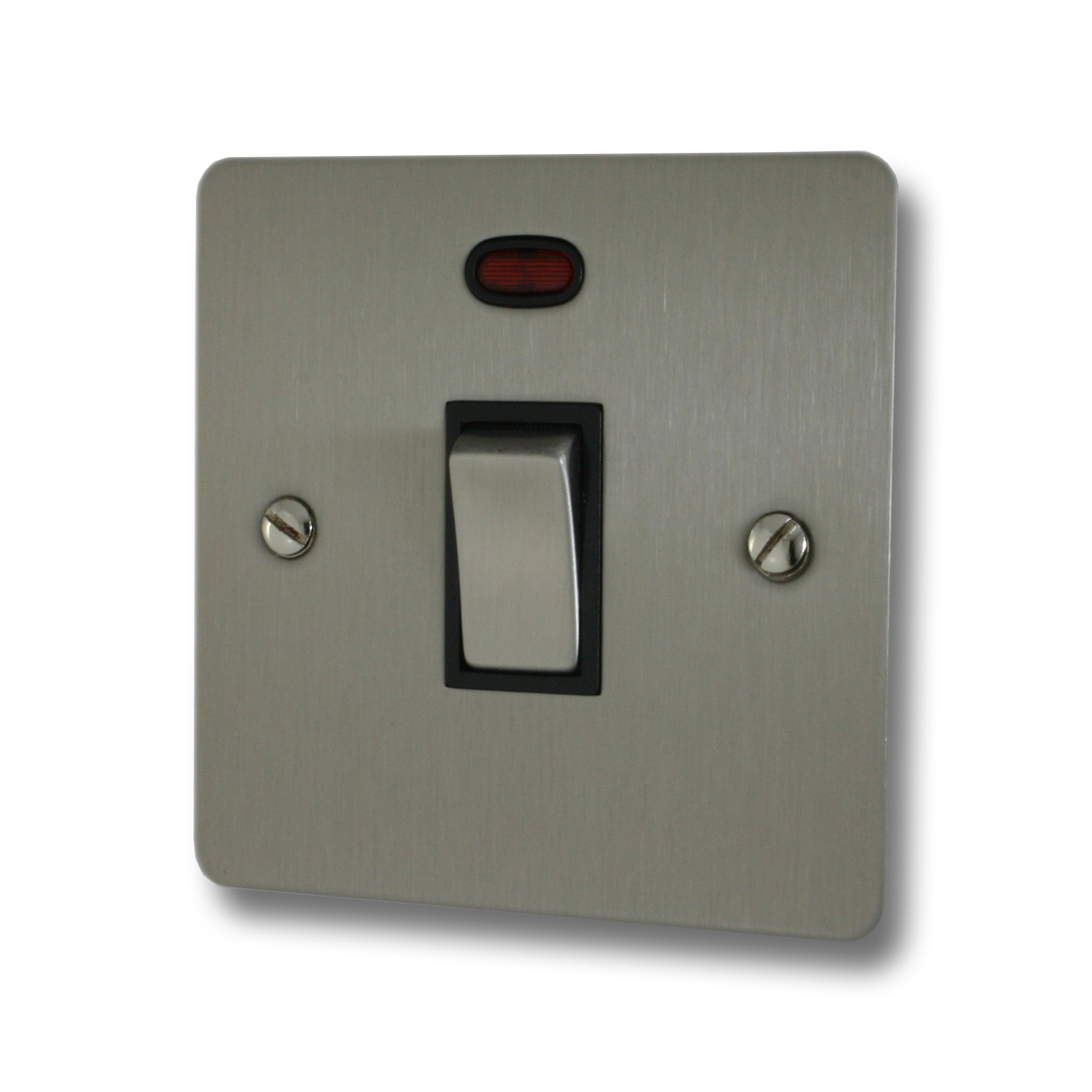 Flat Brushed Steel 20A DP Switch with Neon (Black Insert/Satin Chrome Switch) - G+H FSS326