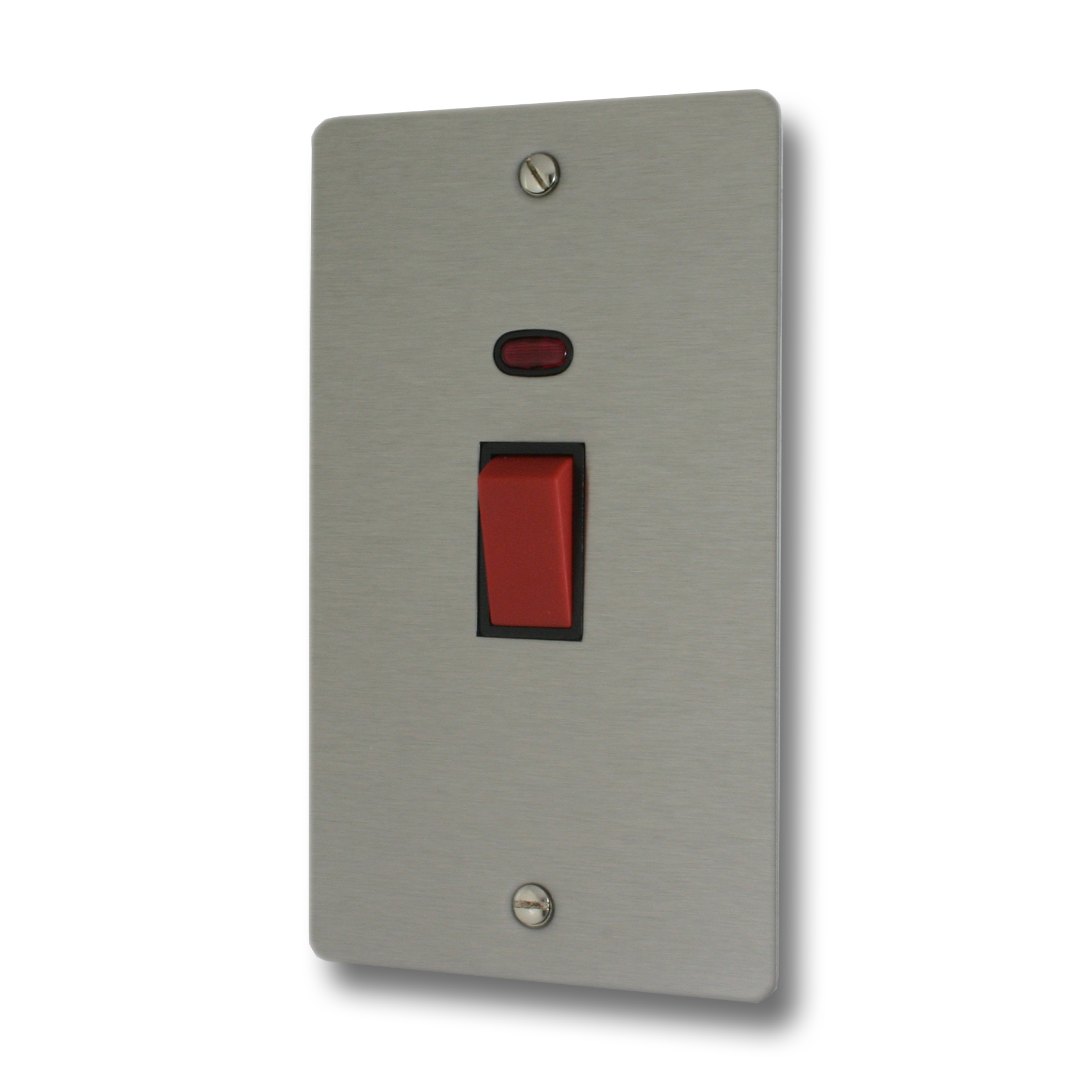 Flat Brushed Steel 45A DP Switch (Black Insert/Vertical Plate) - G+H FSS28B