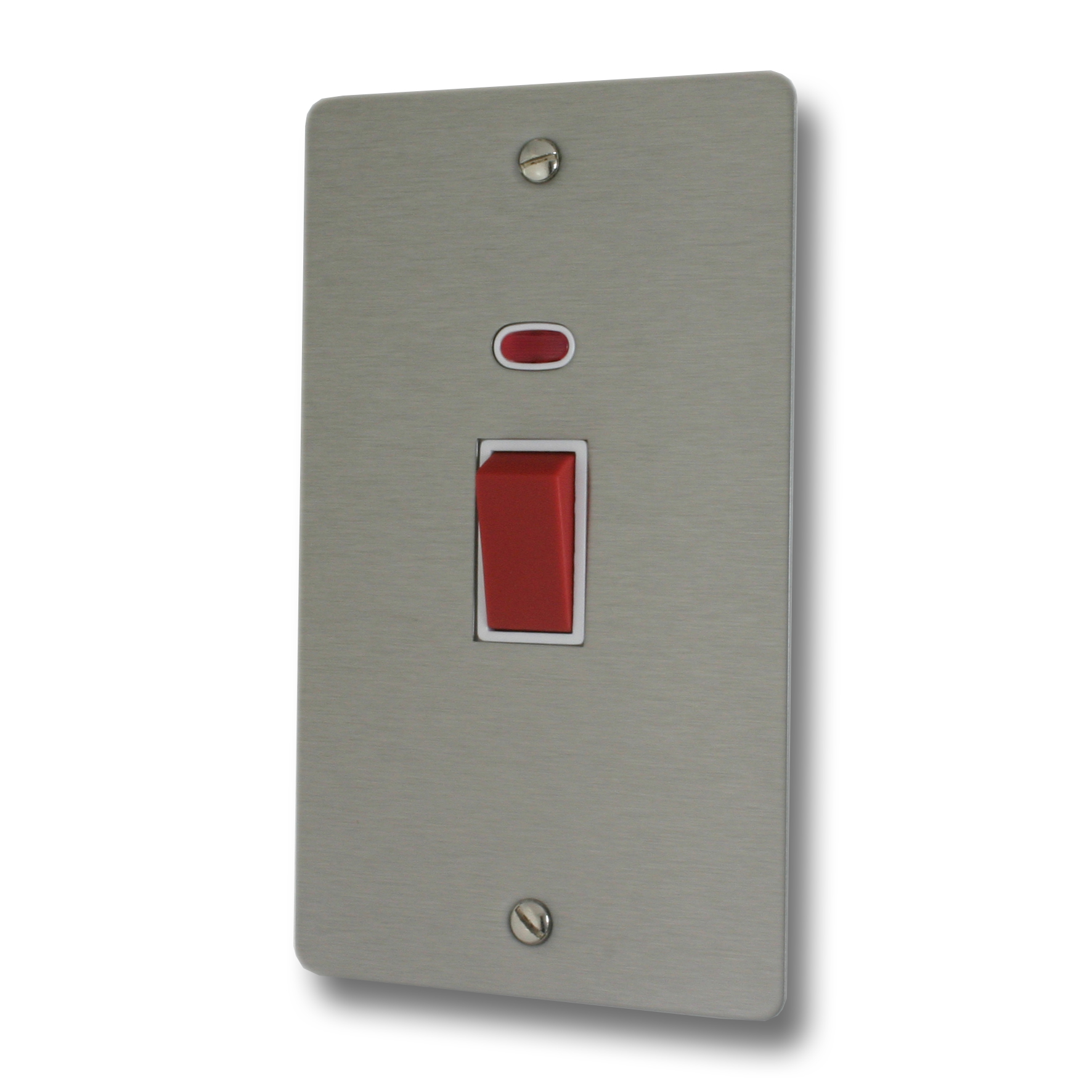 Flat Brushed Steel 45A DP Switch (White Insert/Vertical Plate) - G+H FSS28W