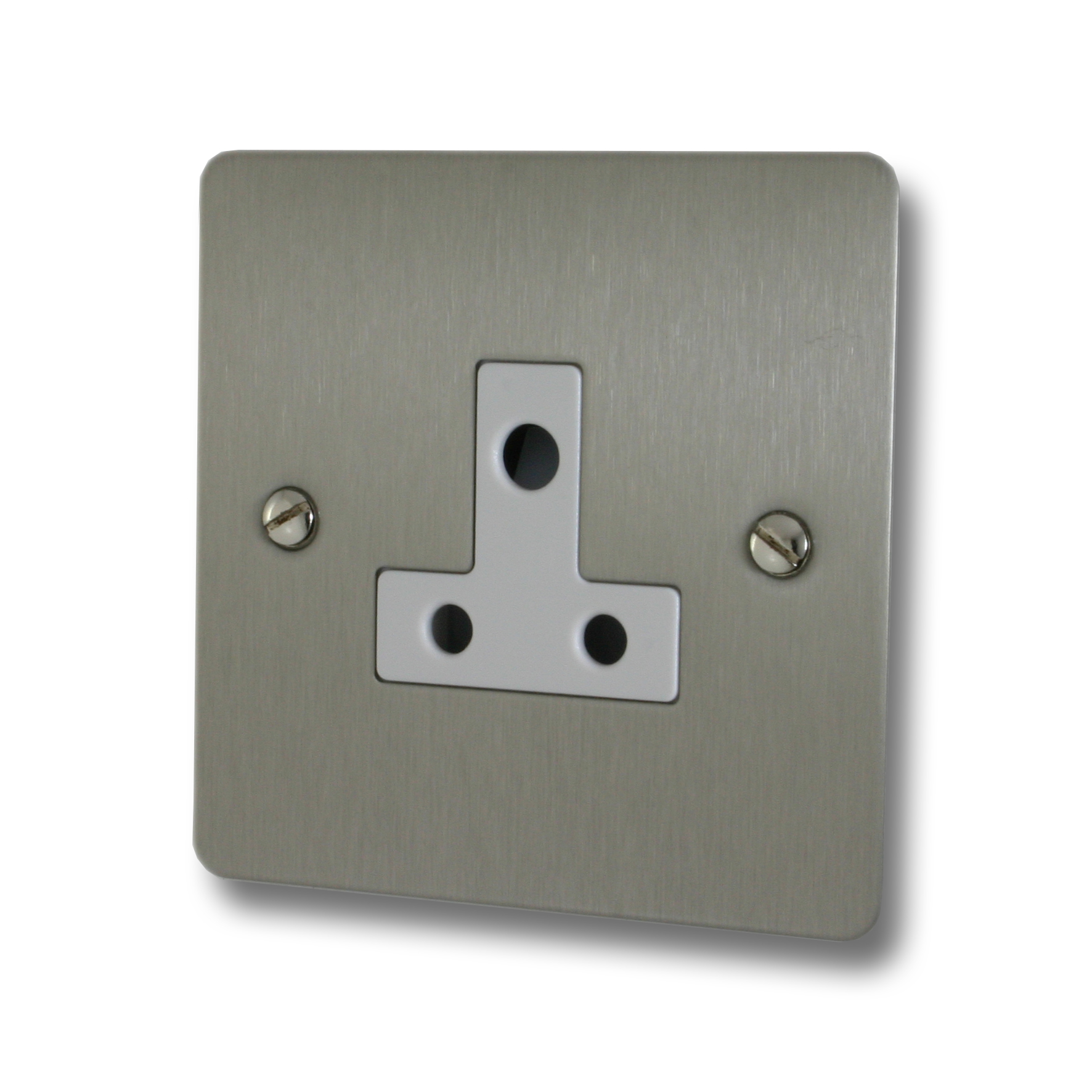 Flat Brushed Steel 5A 3 Pin Socket (White Insert) - G+H _FSS59
