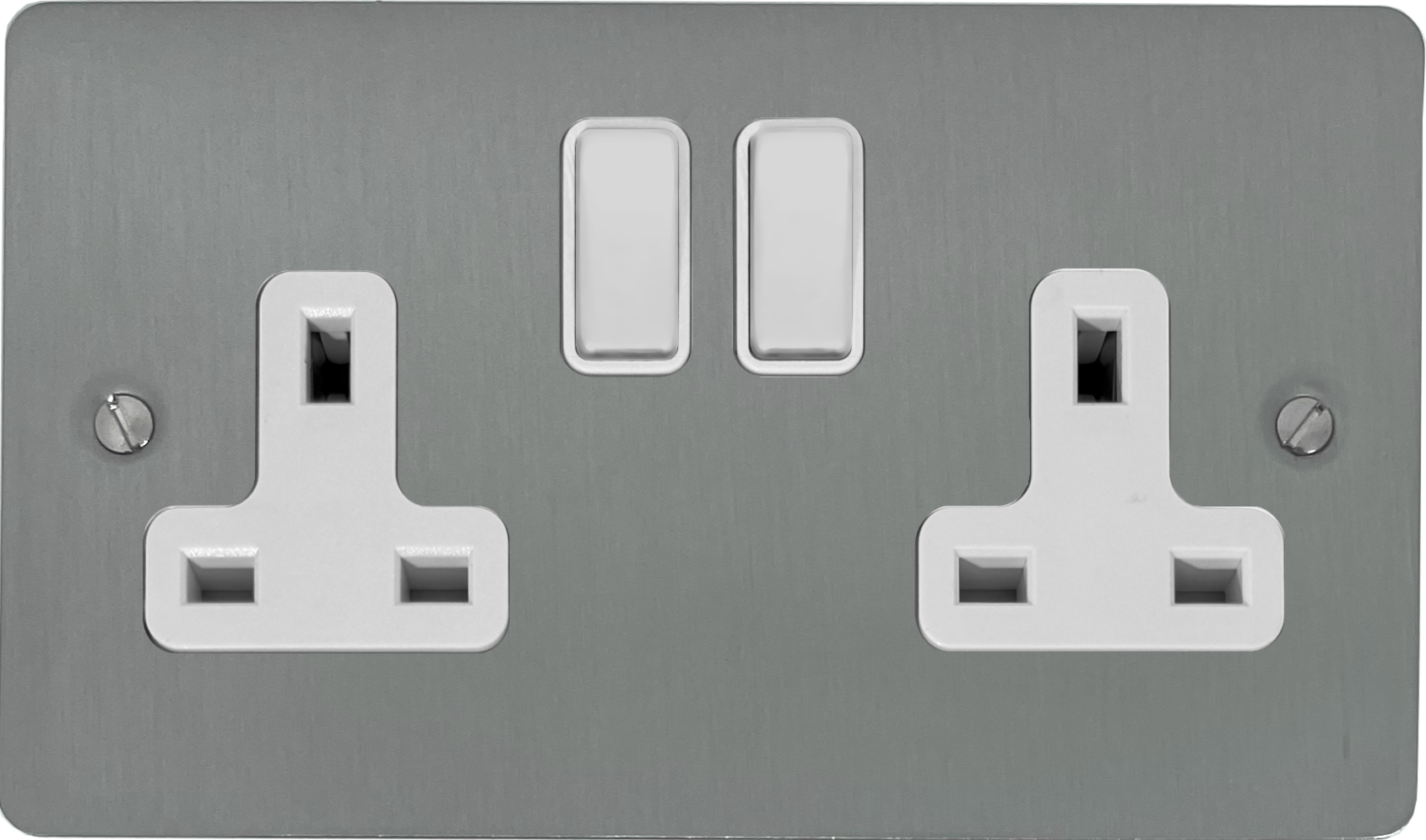 Flat Brushed Steel Double Socket (White Switches) - G+H FSS10W