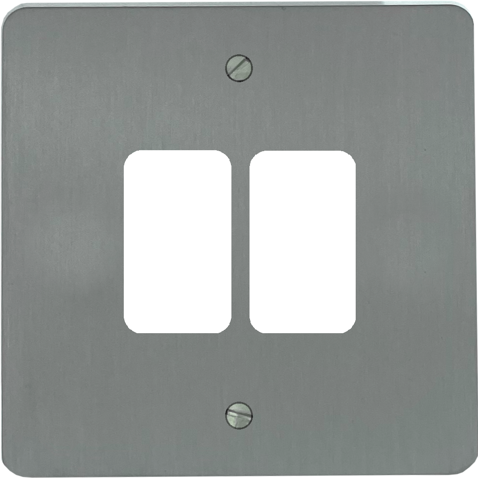 Flat Brushed Steel Grid Plate (2 Gang)