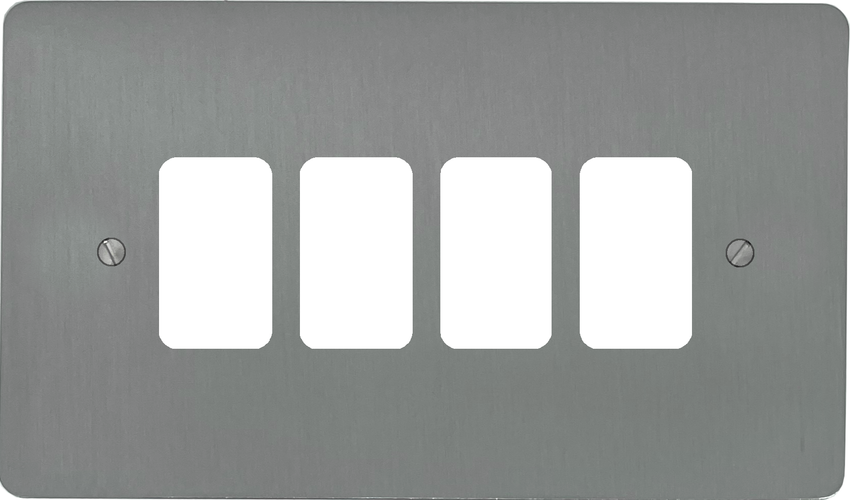 Flat Brushed Steel Grid Plate (4 Gang)