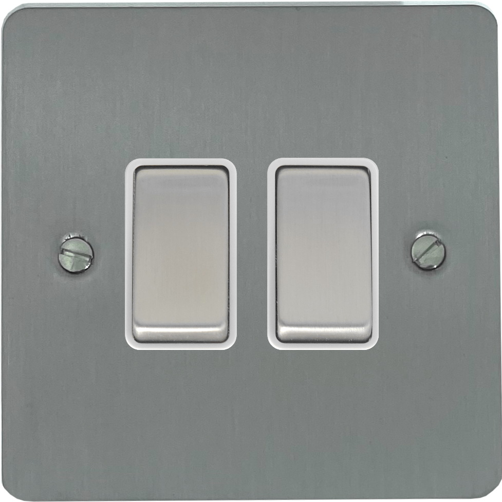 Flat Brushed Steel Light Switch (2 Gang/White Insert/Satin Chrome Switches) - G+H FSS202
