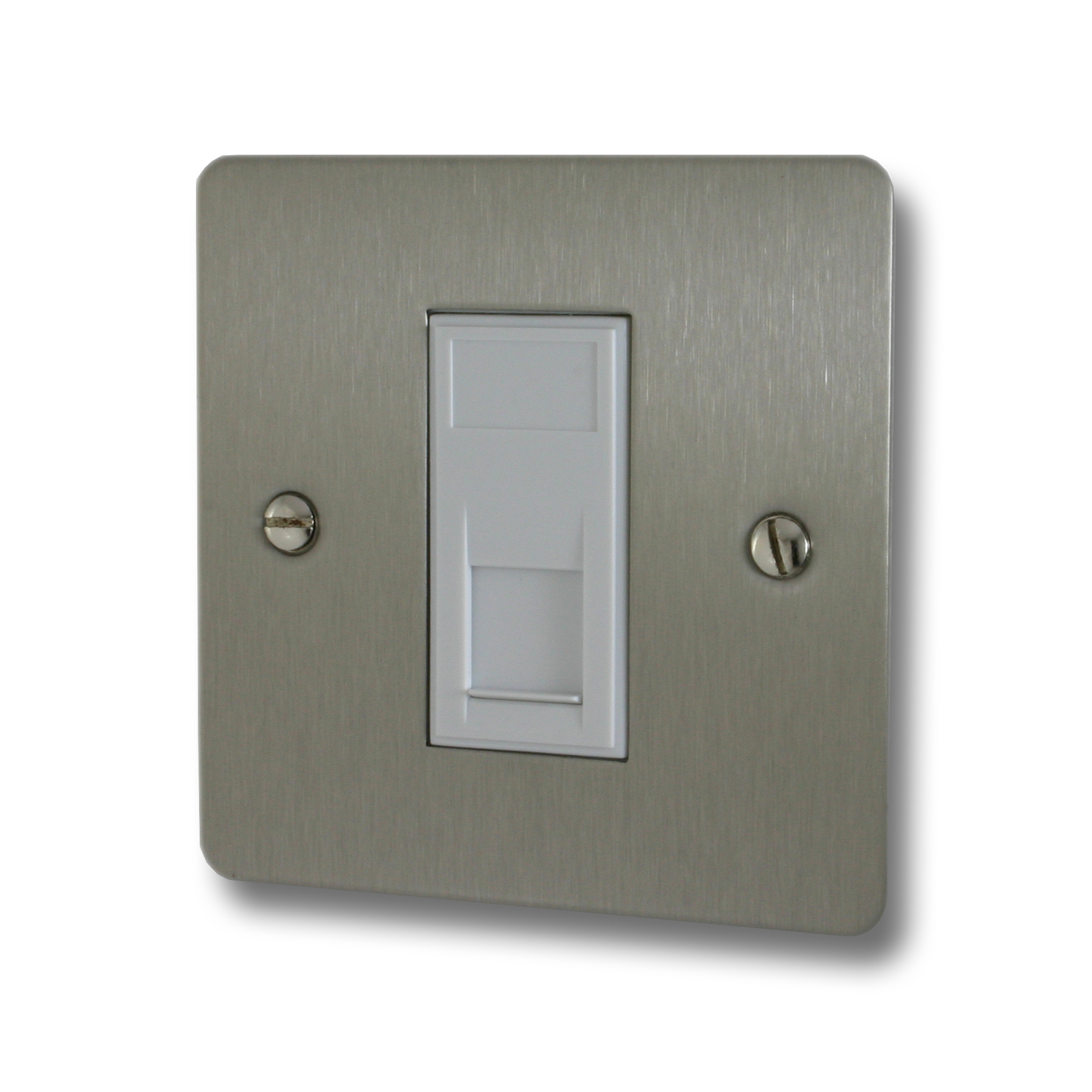Flat Brushed Steel RJ45 Socket (1 Gang/White Insert) - G+H _FSS161