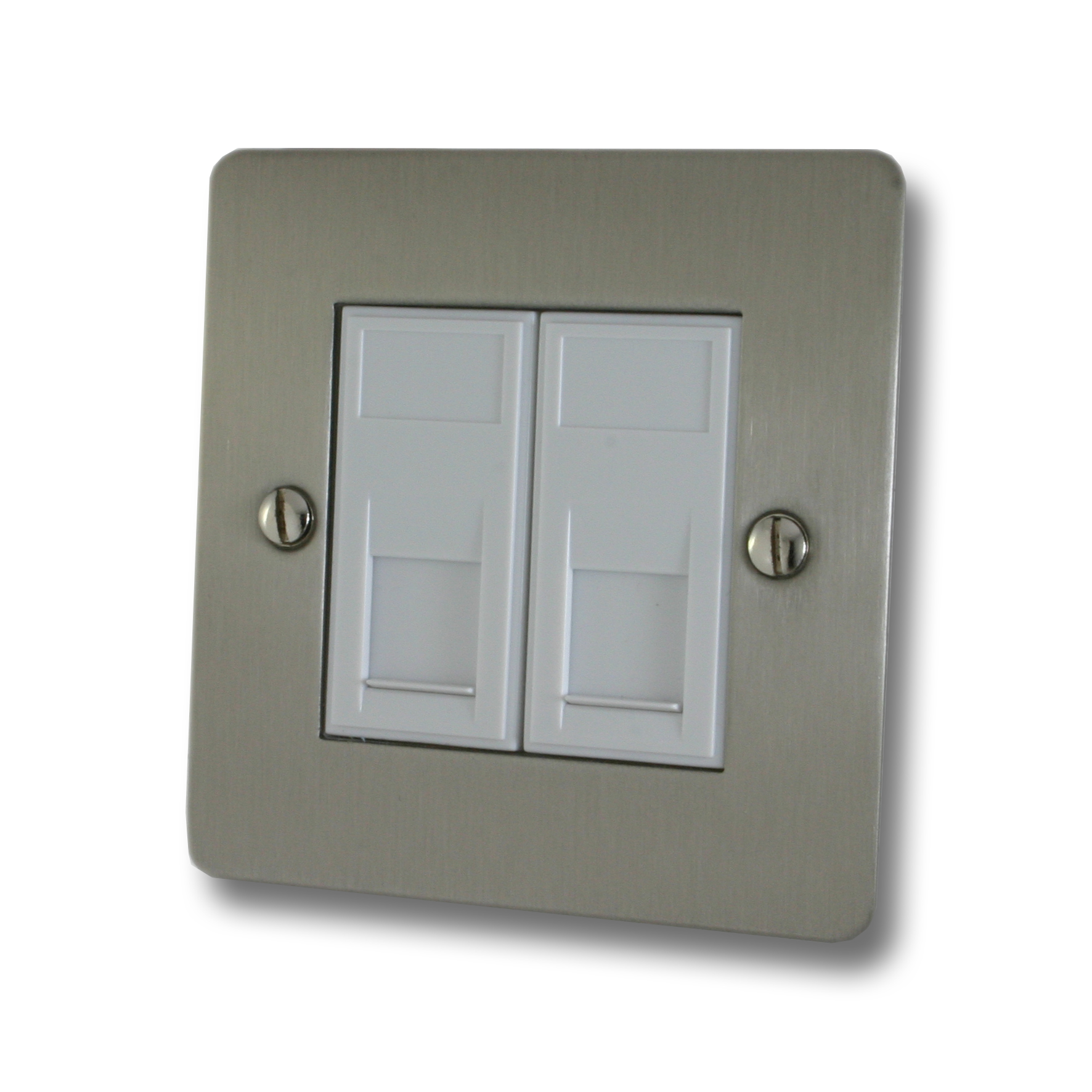 Flat Brushed Steel RJ45 Socket (2 Gang/White Insert) - G+H FSS62W
