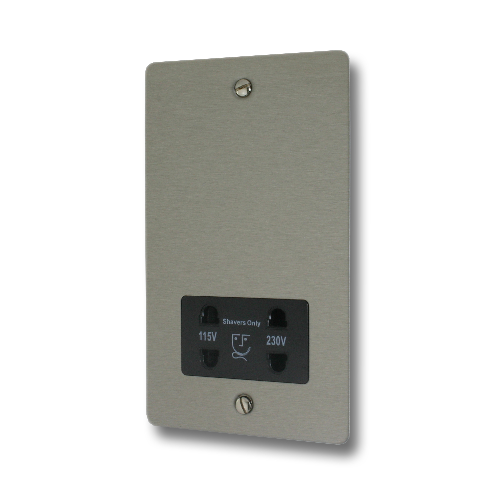 Flat Brushed Steel Shaver Socket (Black Insert)