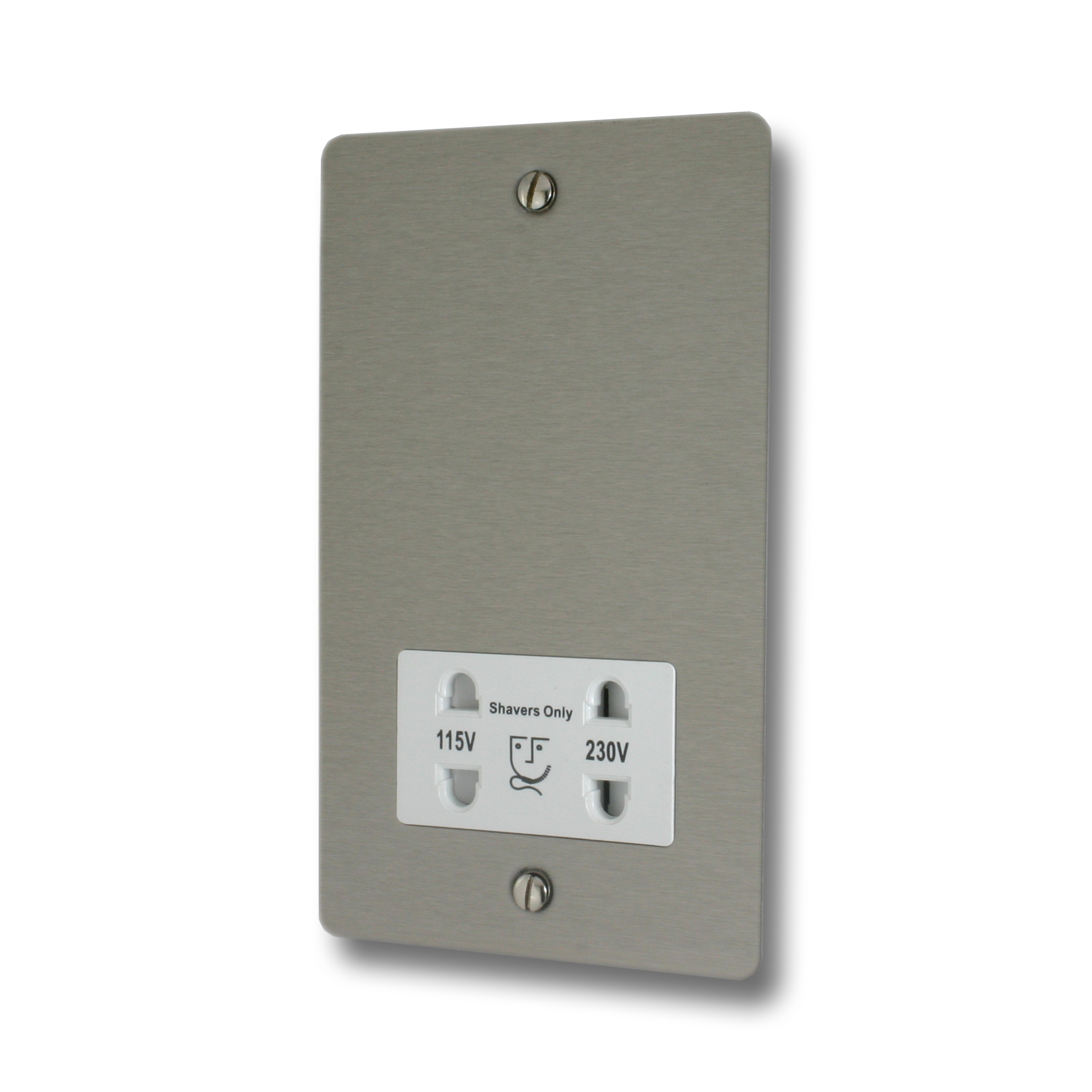 Flat Brushed Steel Shaver Socket (White Insert) - G+H _FSS30