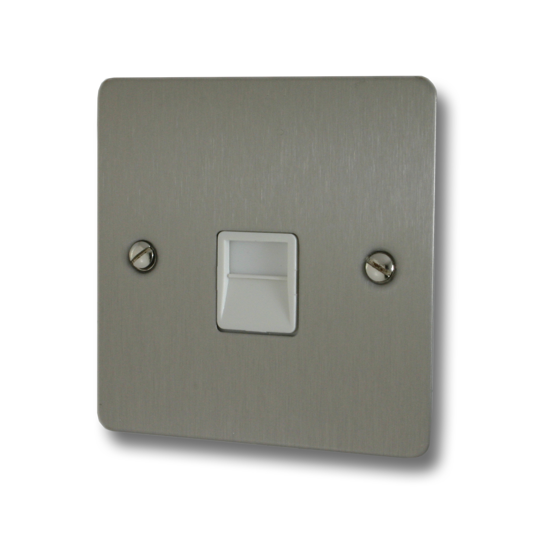 Flat Brushed Steel Slave Telephone Socket (White Insert) - G+H FSS34W