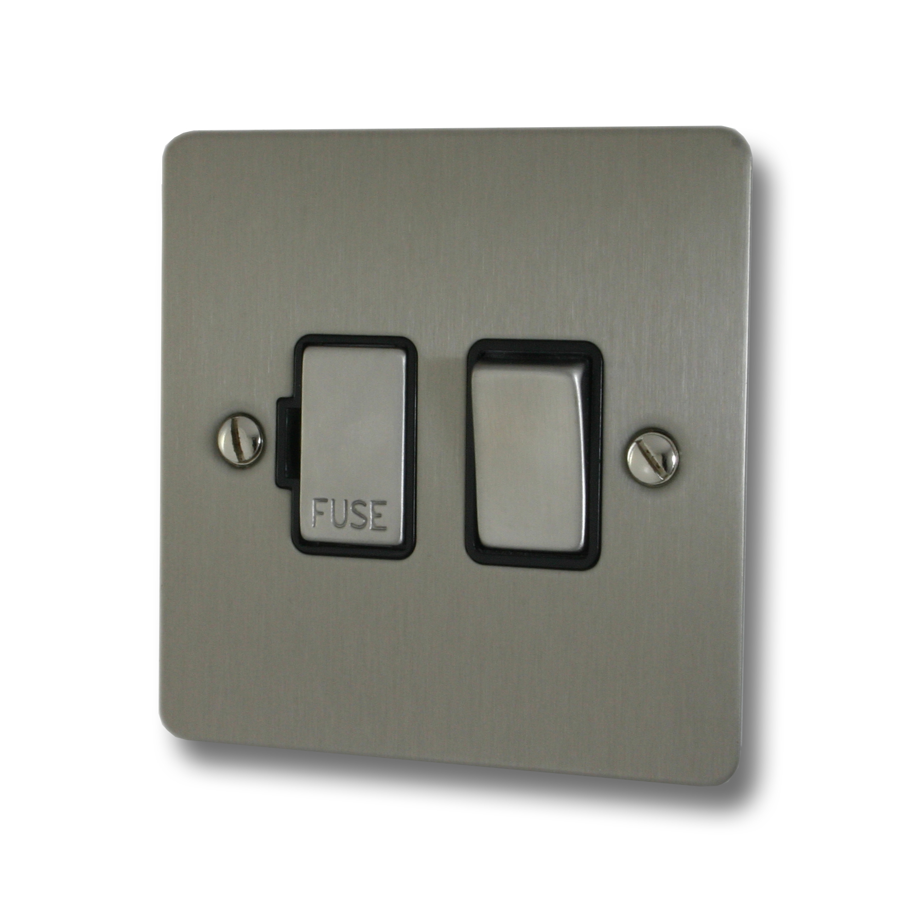 Flat Brushed Steel Switched Fused Spur (Black Insert/Satin Chrome Switch) - G+H FSS357