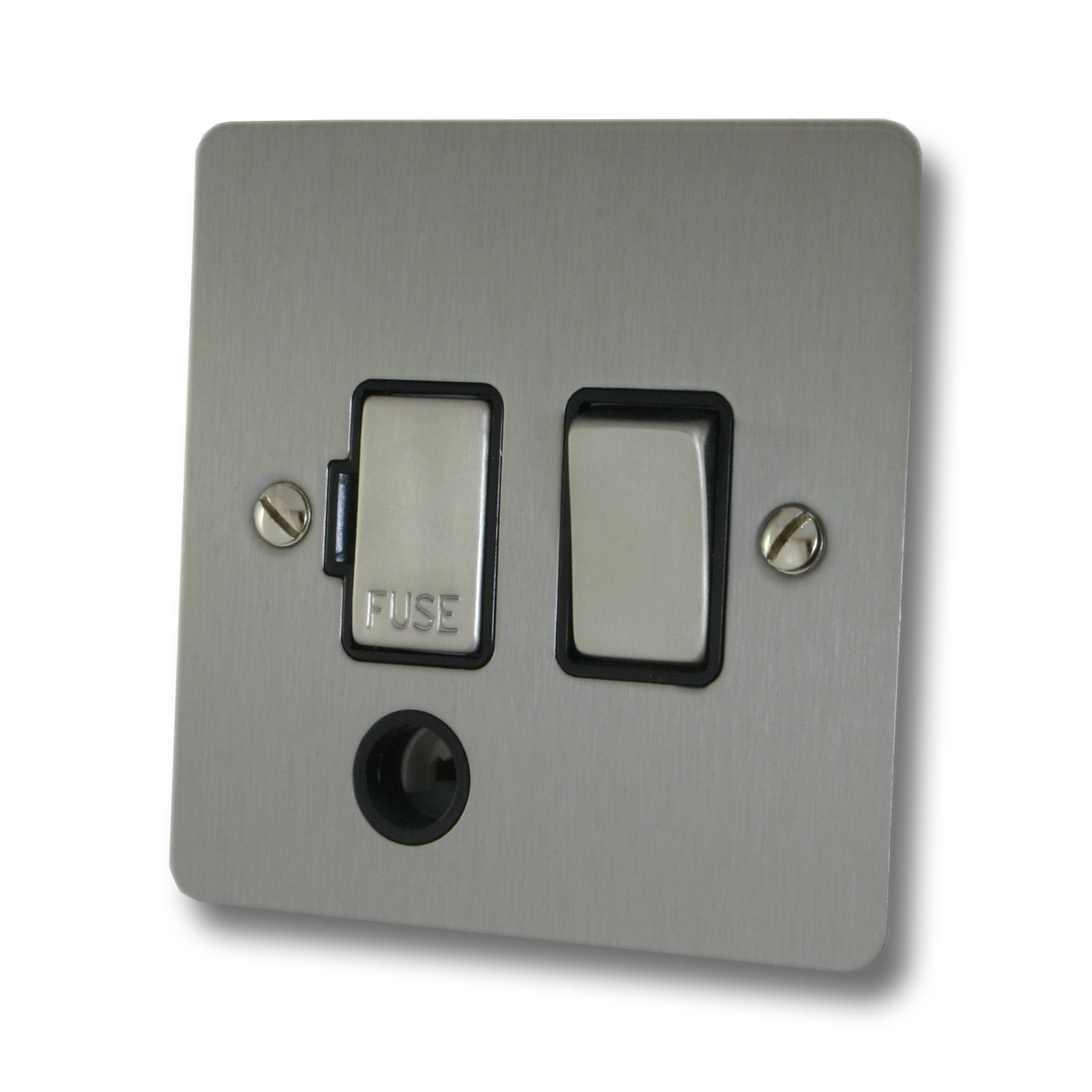 Flat Brushed Steel Switched Fused Spur with Flex Outlet (Black Insert/Satin Chrome Switch) - G+H FSS356