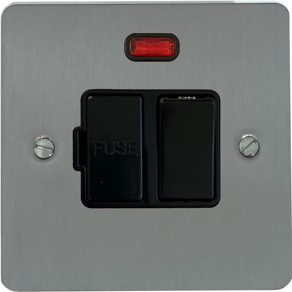 Flat Brushed Steel Switched Fused Spur with Neon (Black Switch) - G+H FSS27B