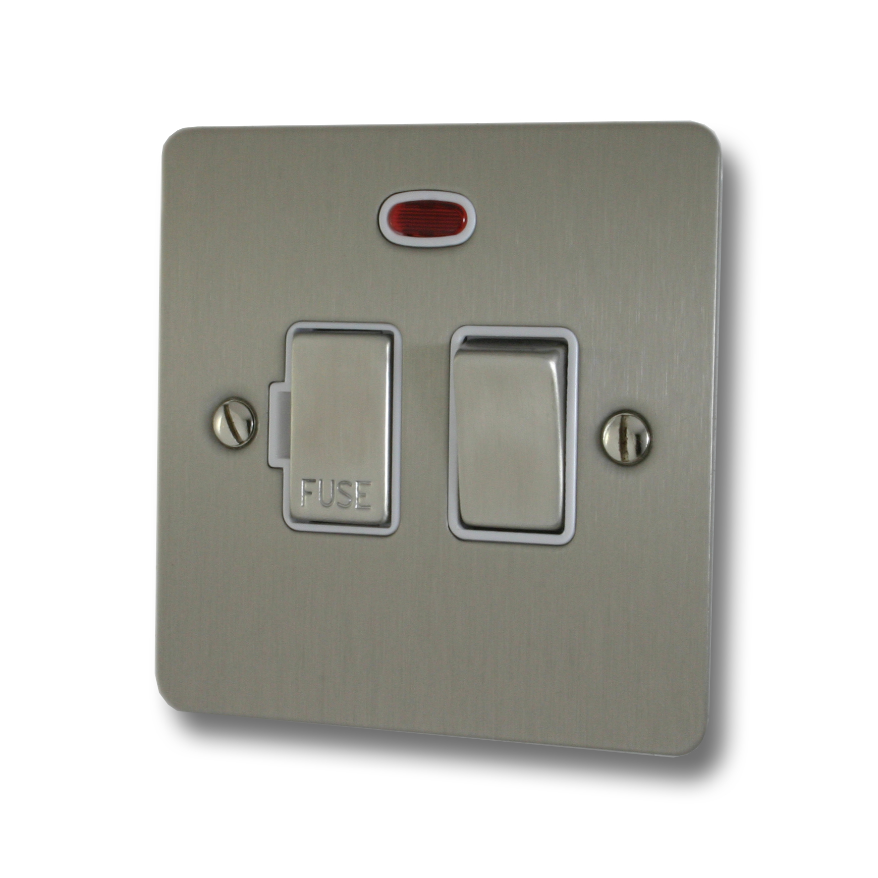 Flat Brushed Steel Switched Fused Spur with Neon (White Insert/Satin Chrome Switch) - G+H FSS227