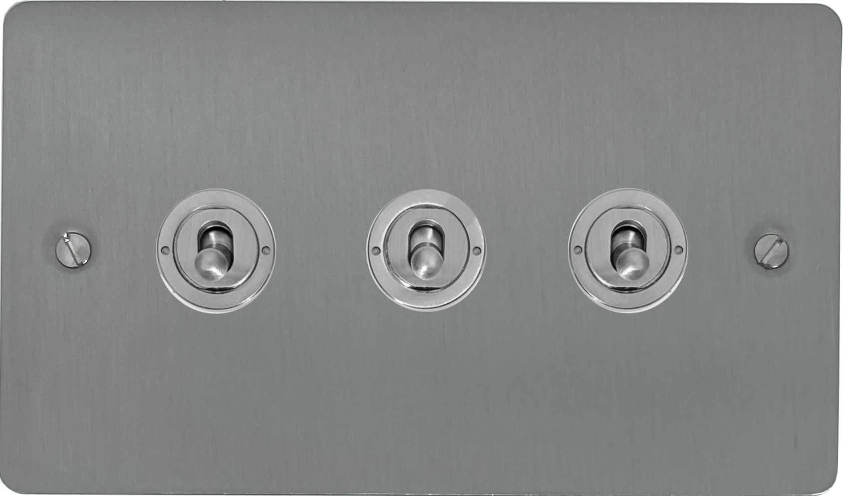 Flat Brushed Steel Toggle Switch (3 Gang) - G+H FSS383