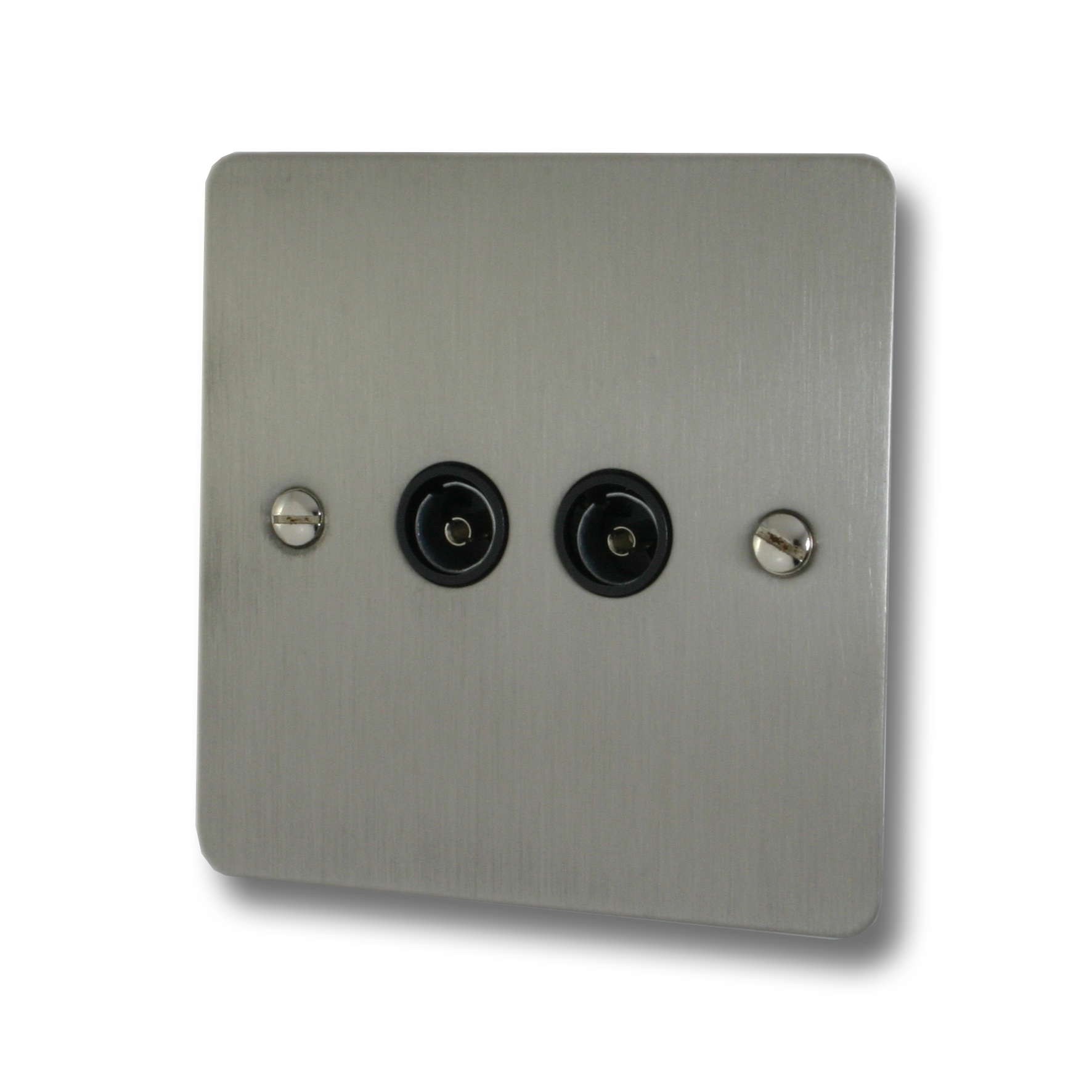 Flat Brushed Steel TV Socket (2 Gang/Black Insert) - G+H FSS36B