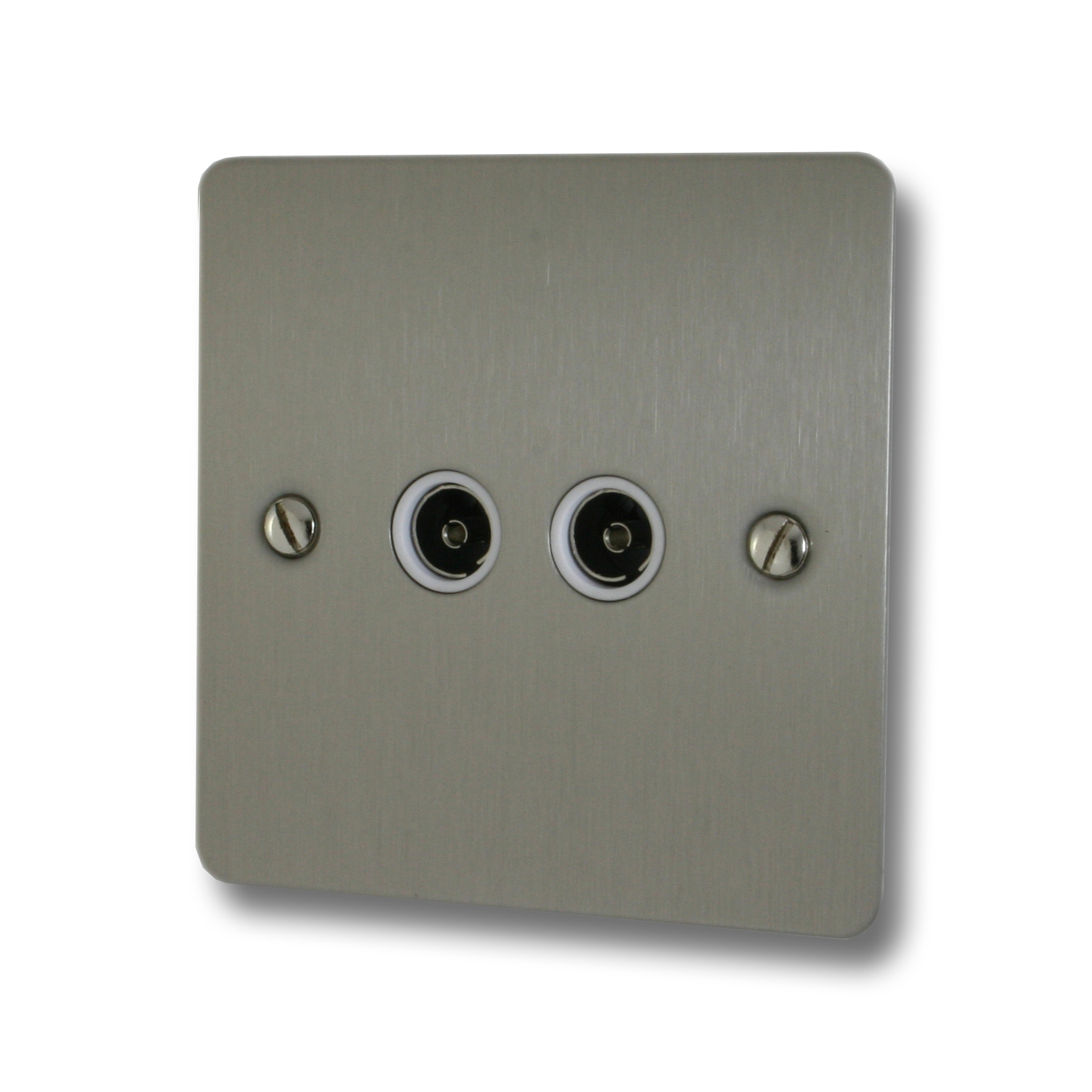 Flat Brushed Steel TV Socket (2 Gang/White Insert) - G+H FSS36W