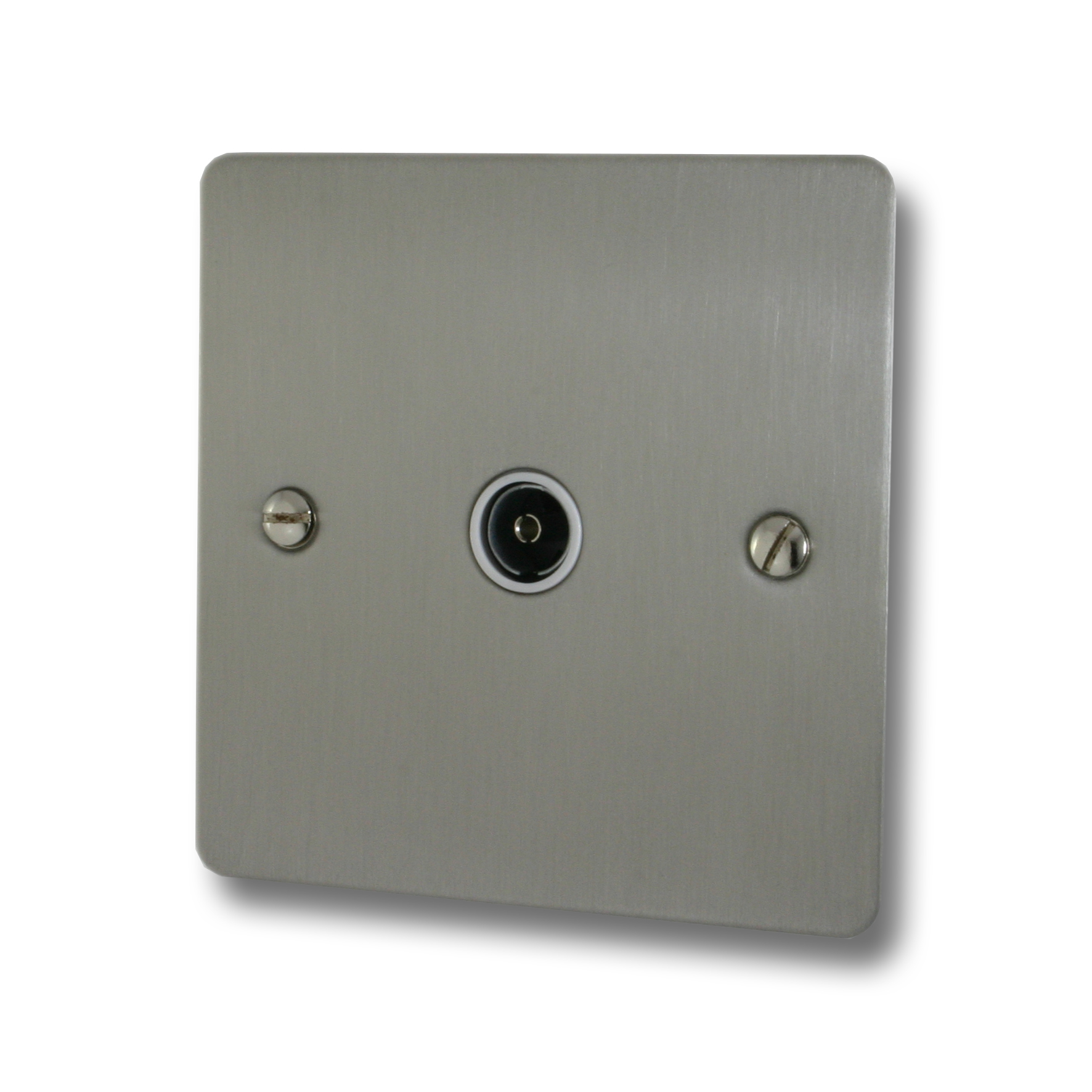 Flat Brushed Steel TV Socket (White Insert) - G+H FSS35W