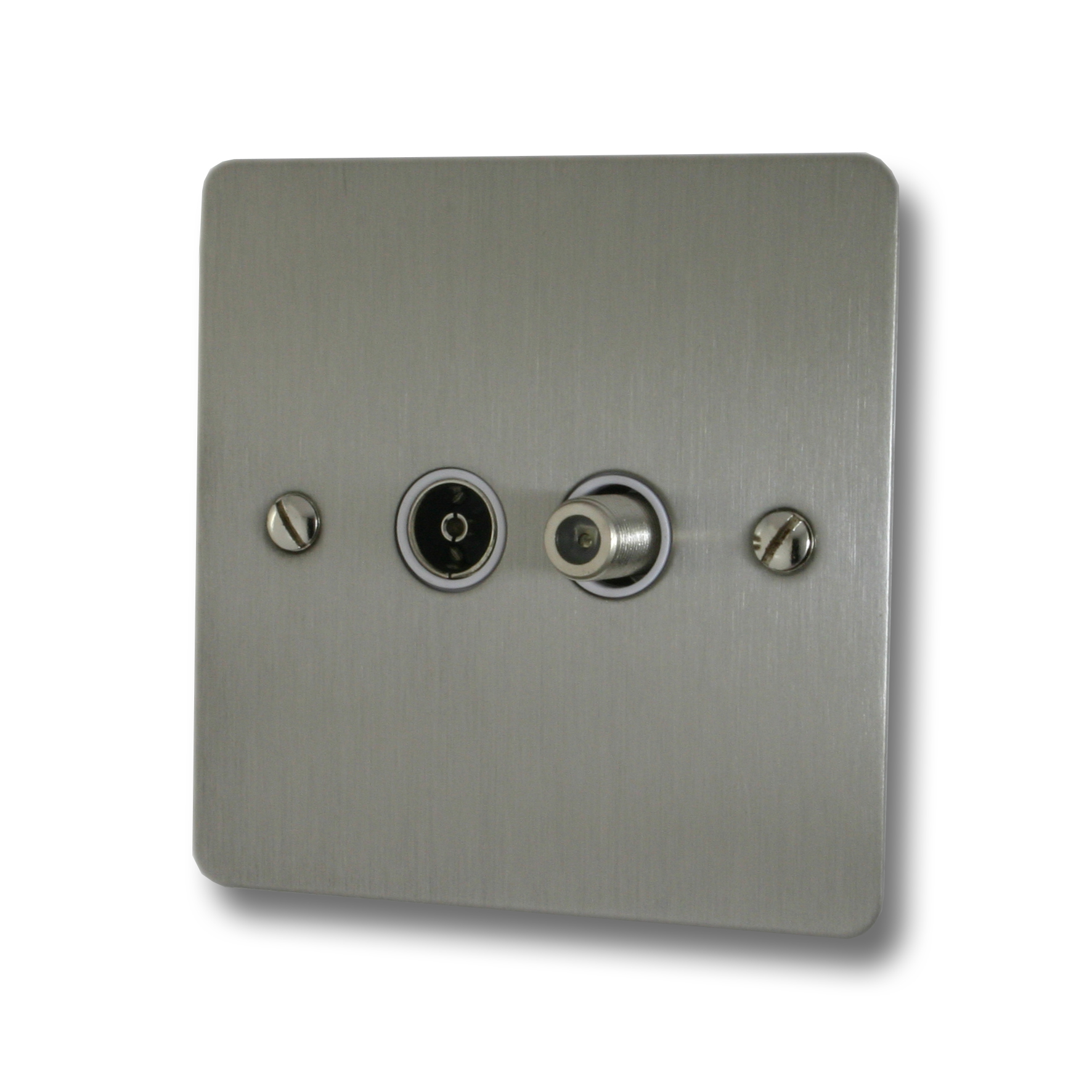 Flat Brushed Steel TV/Satellite Socket (White Insert) - G+H FSS38W