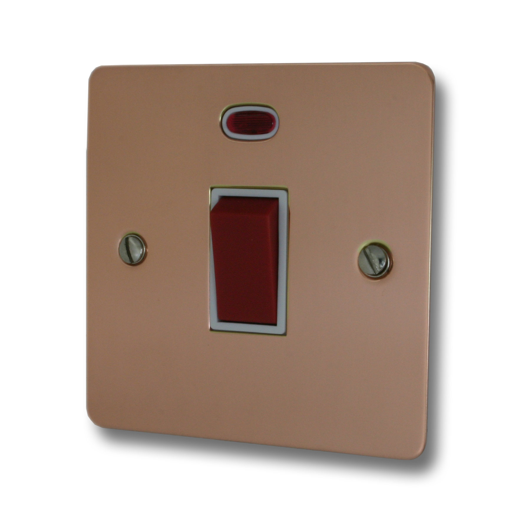 Flat Copper 45A DP Switch with Neon (White Insert/Red Switch) - G+H FBC46W