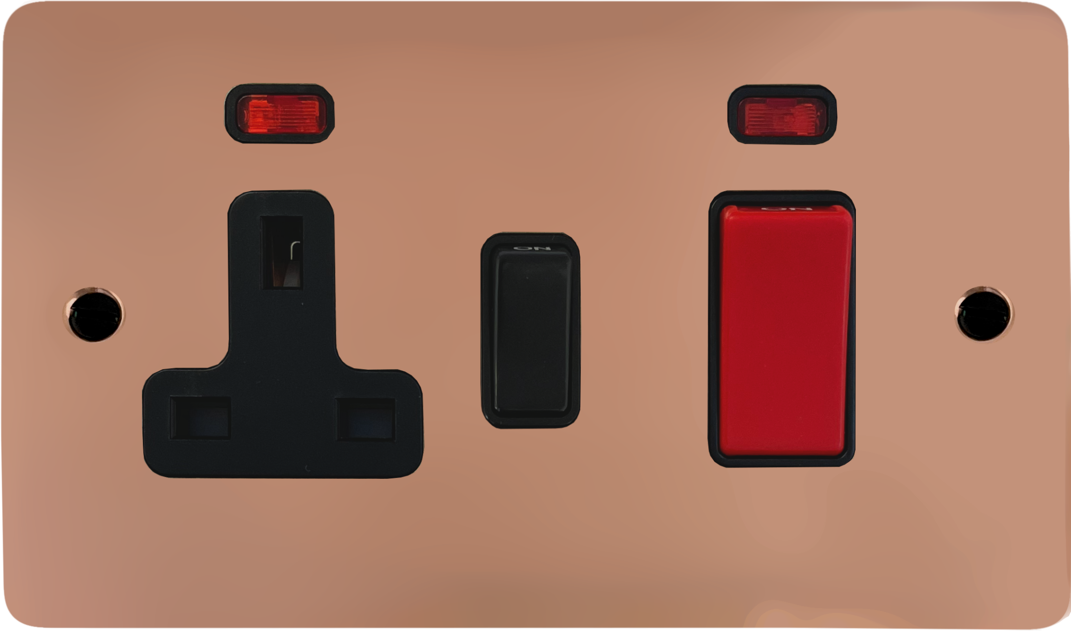 Flat Copper Cooker Switch with Socket (Black Insert/Black Switch) - G+H FBC29B