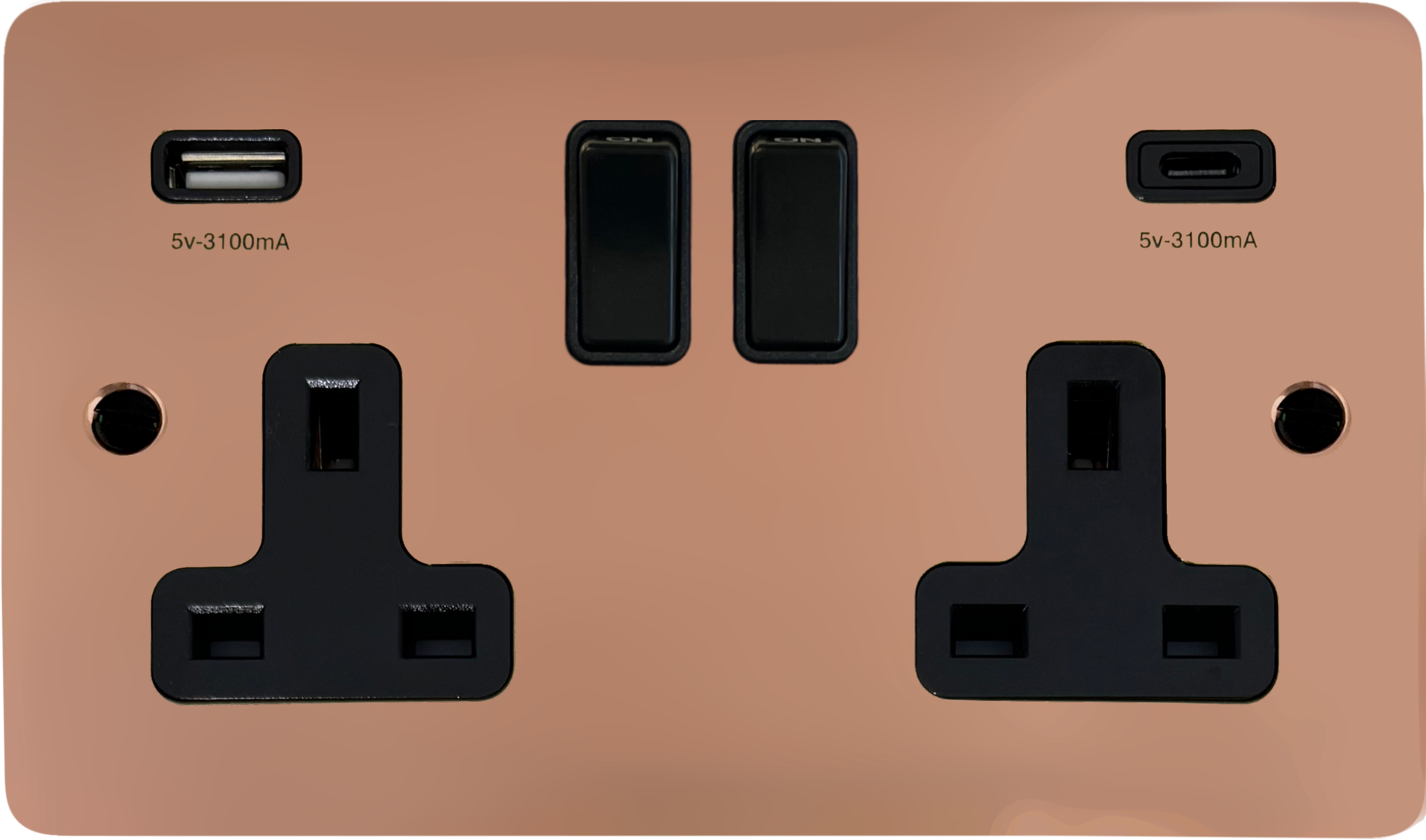 Flat Copper Double Socket with USB (USB-A and USB-C/Black Switches) - G+H FBC911B
