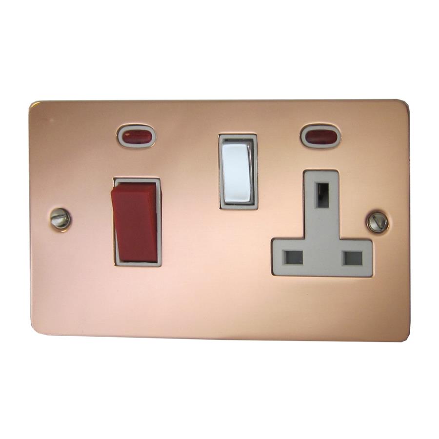 Flat Copper Hand Waxed Cooker Switch with Socket (45 Amp/Chrome Switch)
