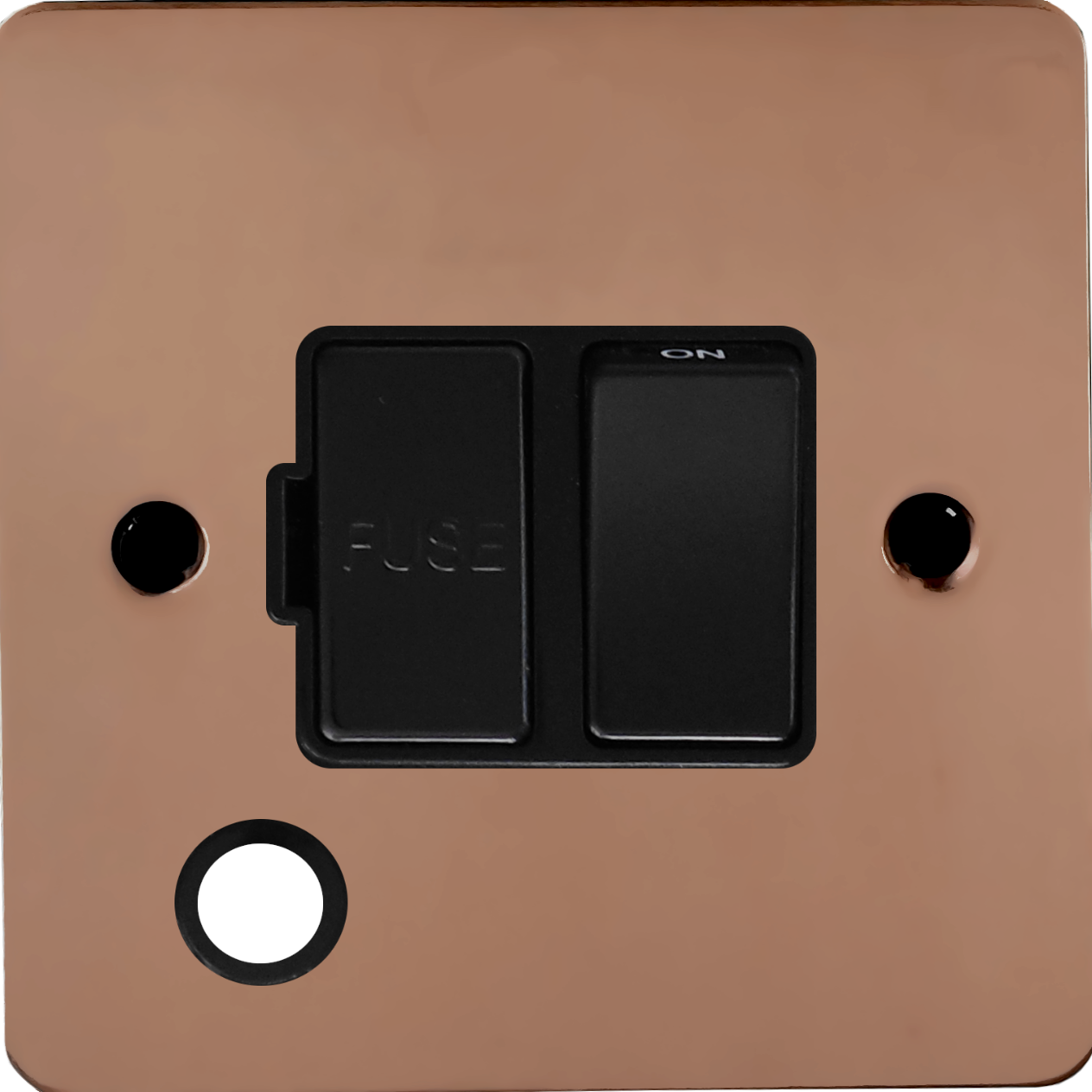 Flat Copper Hand Waxed Switched Fused Spur with Flex Outlet (Black Switch) - G+H FBCHX56B
