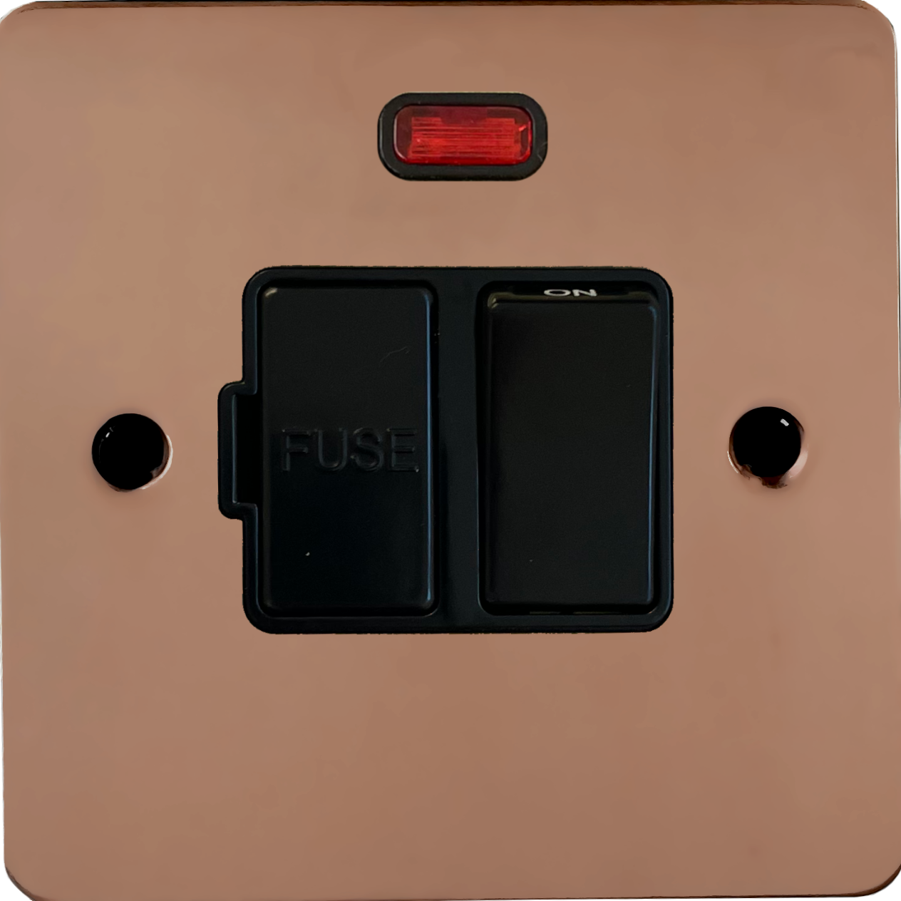 Flat Copper Hand Waxed Switched Fused Spur with Neon (Black Switch) - G+H FBCHX27B