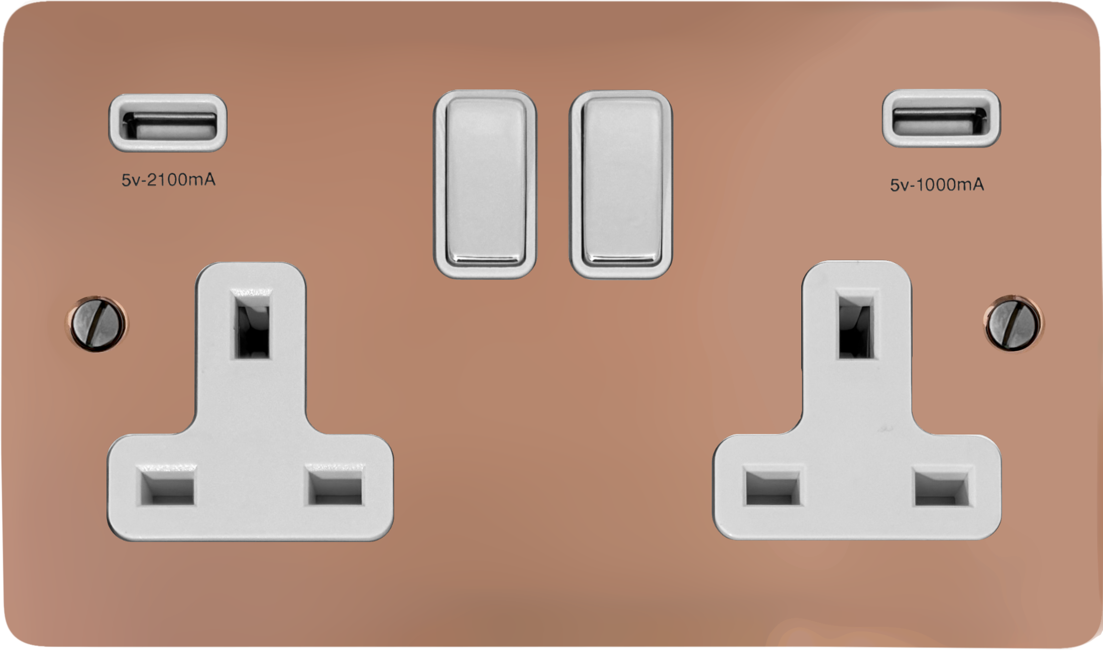Flat Copper Socket with USB (Double Socket/Chrome Switches) - G+H FBC2910