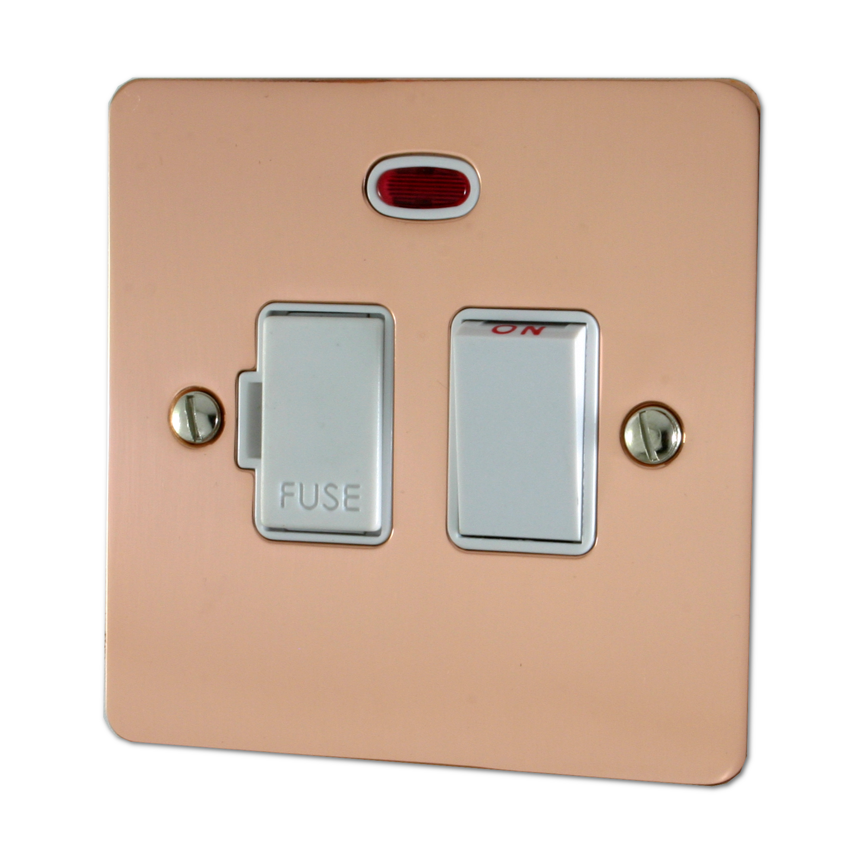 Flat Copper Switched Fused Spur with Neon (White Switch) - G+H FBC27W